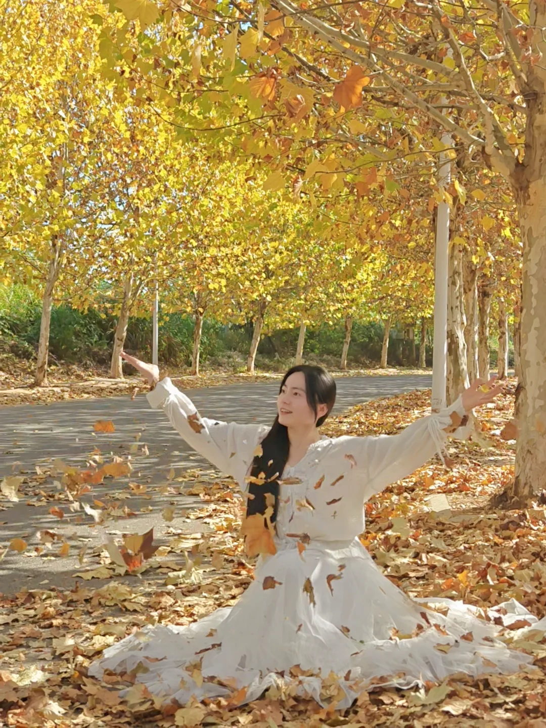 长达500米的梧桐大道已经黄了! 🍂导航新建区溪真农博酒店,从南昌出发30分钟左右,一转弯就能看见满眼的金黄,这里是酒店前的一条小道,两侧全是浪漫的梧桐树。 秋风吹过,漫步在梧桐雨中真的特别美好!也可以带上伞,自己制造一场梧桐雨哟~ 🍂另外,路上车虽然不多,但是拍照玩耍一定要注意安全呀!