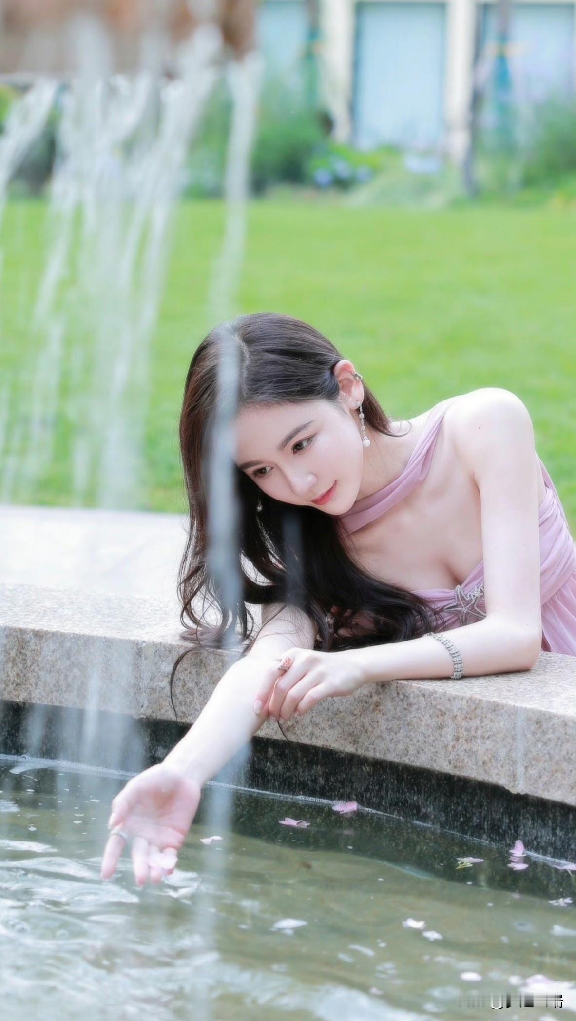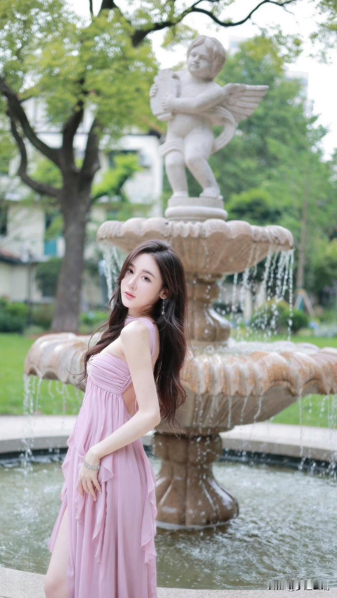 粉嫩连衣裙,花园里的仙气少女。