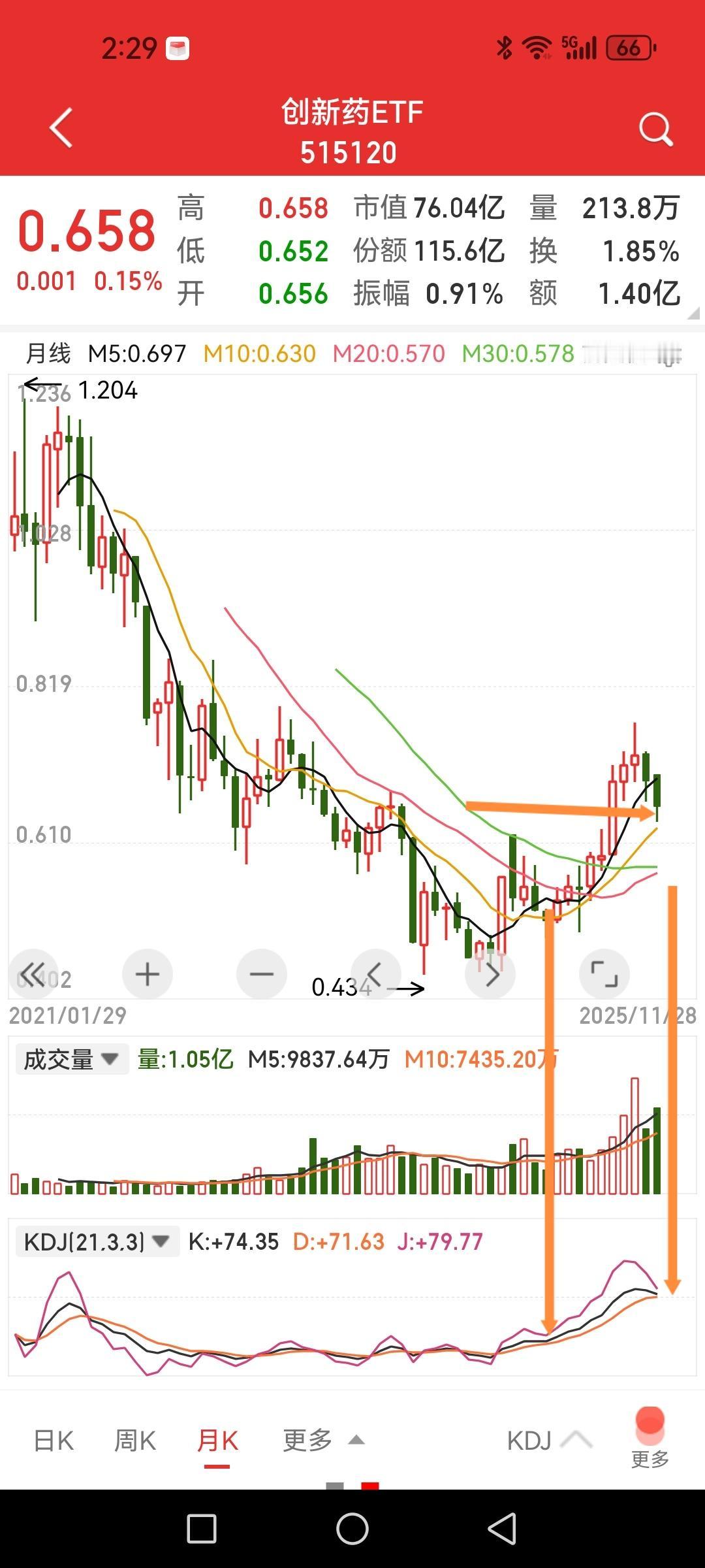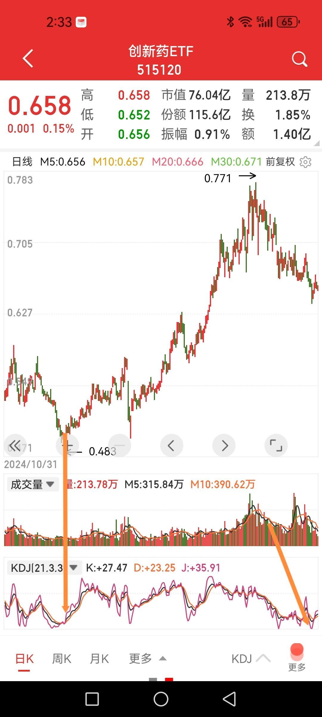 当下是否是创新药二次布局良机?几个技术数据能否看出端倪,这里用以创新药ETF为例来说明。 1、日线。1月13日股价最低时KDJ值分别为7.31、7.19、7.68,现在重新回到低位区,11月21日股价最低时分别为10.08、17.64、-5.05。特别说明,这两个时间节点之间的时段KDJ值都没到达这么低的区域。 2、周线。1月17日那周的KDJ值分别为38.84、46.50、23.53,上周则分别为44.44、53.94、25.45。 3、月线。9月股价达到本轮(今年)这波上涨最高位时的月线KDJ值分别为79.45、66.17、106.02,11月分别为74.35、71.63、79.77。可见目前J值从100以上回落到79.77,重新回到80以下(80以上为强势区间)。 综合评价,日线和周线指标均重新回到接近行情启动前的低位区域,说明调整蓄势充分。而从月线上看KD值尚在80以下,J值经过两个月调整回到80附近得到较好修复。同时,10月和20月均线上行30月均线连续两个月走平,股价回调至5月与10月均线之间,说明上升趋势仍然保持良好。 结论:在本文上述梳理数据下,各位读者自行去评判。逐字编纂,原创不易,一个小星星便是鼓励。