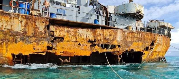 趴在仁爱礁9000多天的菲方破军舰,如今看来彻底拖不走了!补给斗法越闹越丢脸,南海真实实力对比首次被看得一清二楚! 仁爱礁海面飘着的那艘菲律宾军舰,算下来已经在礁盘上趴了9000多天,快25年了。 这船本是美国二战时期的LST坦克登陆舰,1999年菲律宾故意让它"坐滩"在这儿,说是船底漏水,其实就是想赖着不走占礁盘。 如今这船早成了堆废铁,船舷裂着6米长的口子,水线附近破洞能塞进一个人,海水灌得船舱没法住,守舰的士兵只能在甲板搭棚子将就。 说白了,这船现在根本没法拖——不是拖不动,是菲方压根不想拖,还一门心思要维持"实际控制"。 但想守着就得补给,这两年的补给斗法,把菲方的底气不足暴露得明明白白。 2025年8月那次最典型,菲方派了三艘公务船,有海警巡逻舰也有渔政船,想绕到半月礁玩"声东击西",避开中方防线偷渡物资。 结果中方早预判到了,海警5304舰带着船队提前摆好了拦截阵,这船是万吨级的,吨位比菲方所有船加起来都大,还装着76毫米舰炮,天上还有直升机和无人机盯着。 菲方那几艘船折腾了两天,绕圈、加速冲闯都没用,中方执法船只是侧向卡位就把路堵死了,既没碰撞又没让他们前进一步。 最后菲方的渔政船先扛不住返航,另外两艘也灰溜溜退回了巴拉望岛,舰上士兵断粮都超百天了,最后一点希望也没了。 更尴尬的是2024年6月,菲军特种部队想强行补给,被中方25艘船围住,8个兵被俘,枪都给缴了。 这背后其实是实力的碾压,菲方全年军费才56亿美元,买20架F-16就花了55.8亿,剩下的钱根本不够搞南海部署。 他们派来的船大多是美国退役的二手货,而中方在仙宾礁附近还有055驱逐舰、071登陆舰当支援,形成了梯次防御。 菲方一直喊着有美国撑腰,可真到对峙时,那些联合军演的盟友连影子都见不着,所谓的支持全是口头功夫。 现在这船连基本的生态都破坏了,烧垃圾冒黑烟,锈蚀的重金属渗进海里,珊瑚礁都死了一片。 中方其实一直留着余地,之前允许菲方通报后送生活物资,但菲方非要夹带建材想加固舰体,这才被硬拦下来。 说白了,这船拖不走的核心,是菲方想靠耍赖占主权,可实力差距摆这儿,再折腾也只是丢脸。 以上都是个人观点,对此您有什么不同的看法,可以在评论区留言讨论!!!