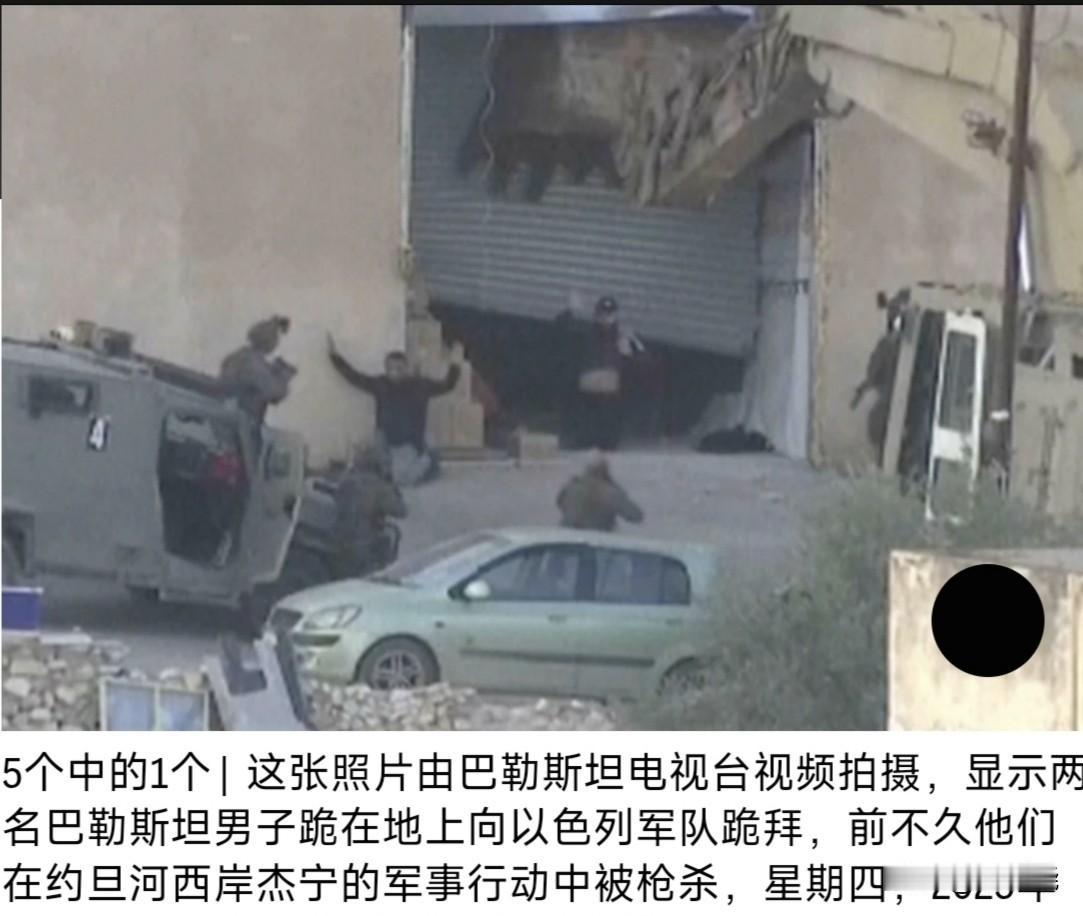 以色列军人太血腥! 巴勒斯坦人既然投降也难逃一死,不如燃起斗志,和敌人拼出个是非成败 11月27日在加沙西岸的电视台播放的视频中两名巴勒斯坦男子从车库出来,高高举起双手,撩起衬衫,以示他们没有携带爆炸物。他们被命令跪下,并被其中一个以军士兵踢了一脚,然后被几名以色列军人开枪打成筛子,没有生命迹象。