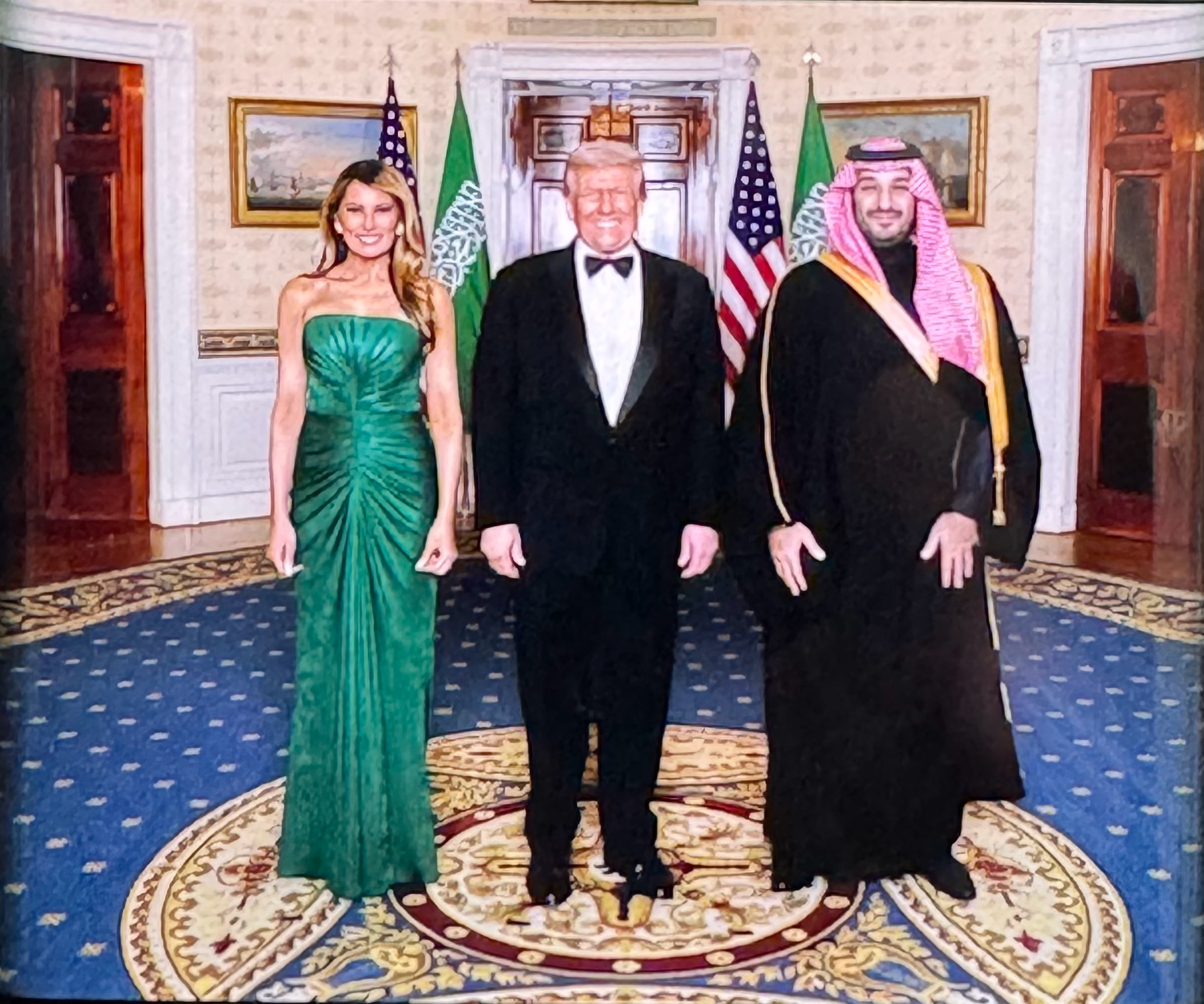 特朗普放出终极权力秀:与梅拉尼娅、沙特王储同框的高光照片这张照片的冲击力堪比一颗镀金手榴弹:特朗普身着笔挺西装,肤色黝黑、神情志得意满;梅拉尼娅则尽显经典斯拉夫优雅(那种能让超模都自愧不如的气质),二人与沙特王储穆罕默德·本·萨勒曼并肩而立——这位石油大亨刚敲定了一份价值2万亿美元的军火协议,还就能源独立问题轻声承诺“你想要什么都可以”。这简直是一场“加冕礼”:特朗普夫妇从过去四年混乱的形象、隐晦的丑闻和“拜托,伙计”之类的失态中,重新夺回了白宫的掌控权。卡玛拉团队把宾夕法尼亚大道1600号(白宫)变成了“平权多元化”托儿所,而特朗普团队已然回归——协议源源不断,盟友纷纷站队,美国终于重拾“老大”姿态。那个充斥着“低能量抢镜”和“亨特笔记本丑闻掩盖”的时代,彻底终结了。格调、魅力与雷厉风行的外交手腕刚刚登场——全世界都看在眼里。消息来源: