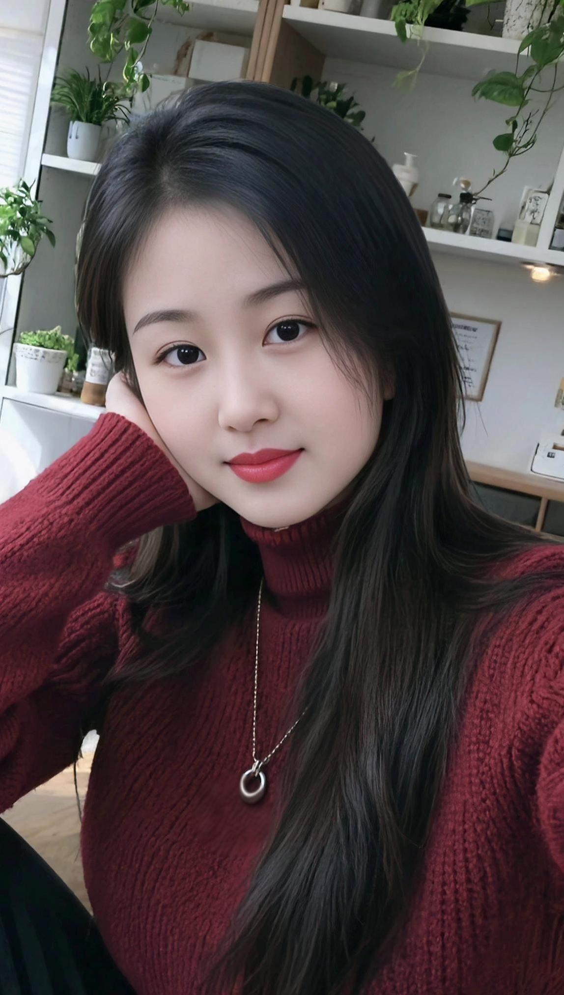 AI酒红毛衣自拍