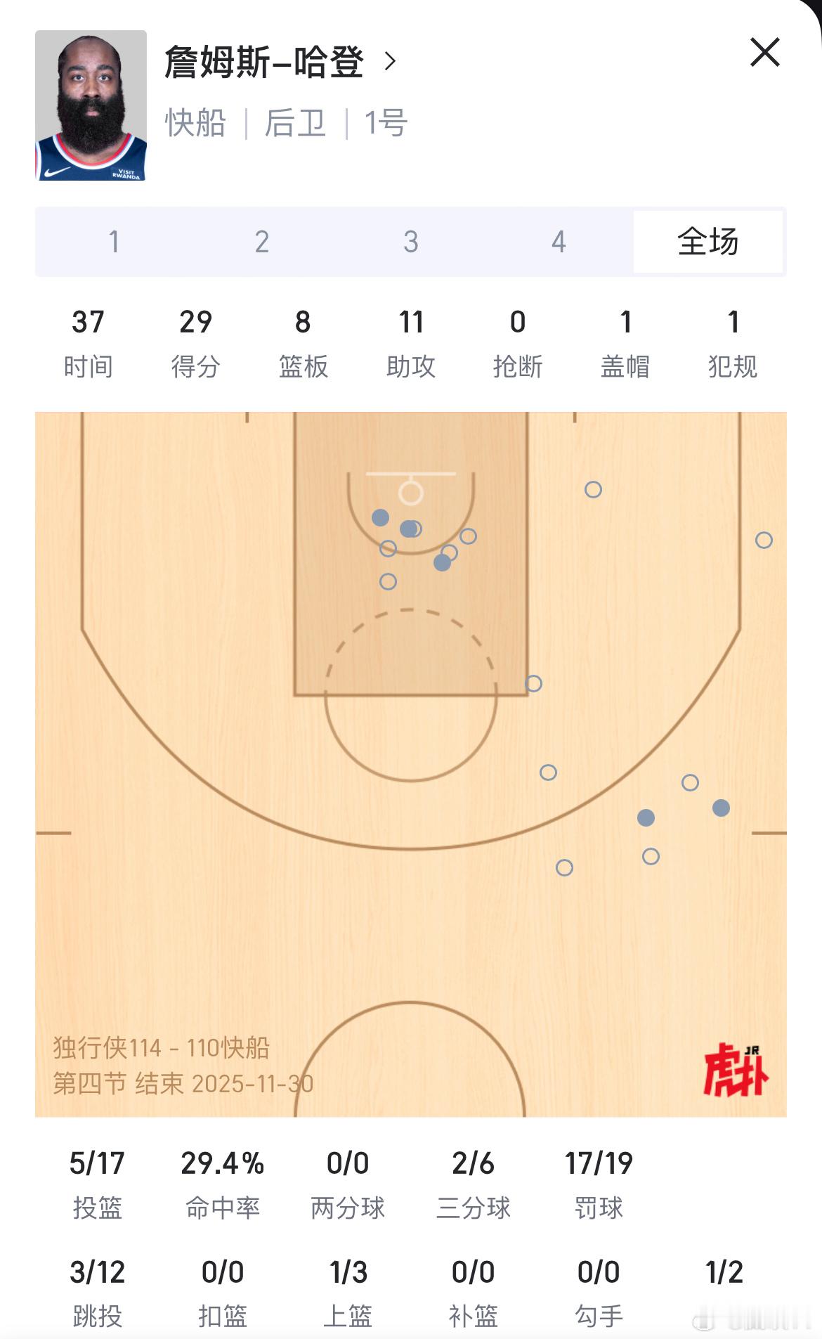 登峰造极!如果你没有看过巅峰哈登那就看看今天的登哥,17投5中29分,一球6分,这就是苹果罚球快船vs独行侠