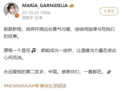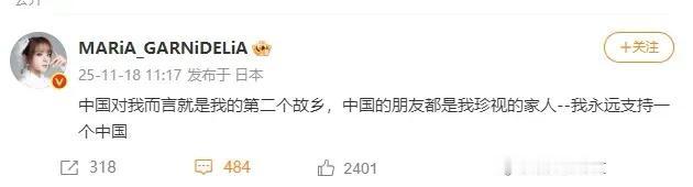 日本歌手美依礼芽把微博账号名前缀改成中文,曾发文表示“永远支持一个中国”美依礼芽(MARiA),本名水桥舞,1992年1月31日出生于日本茨城县土浦市,日本女歌手、作词人,NICONICO动画舞见,男女双人音乐组合GARNiDELiA成员,代表作《极乐净土》,曾参与《乘风破浪的姐姐》综艺录制,多次表达对中国的喜爱。