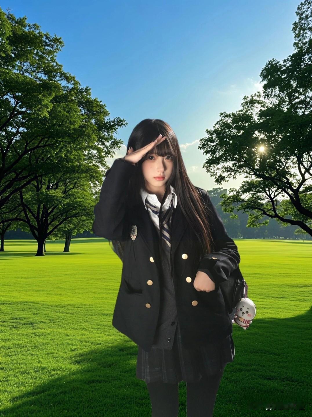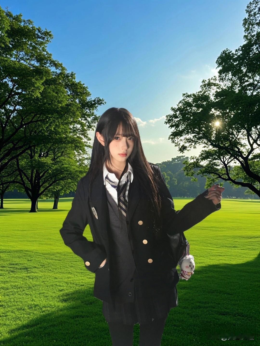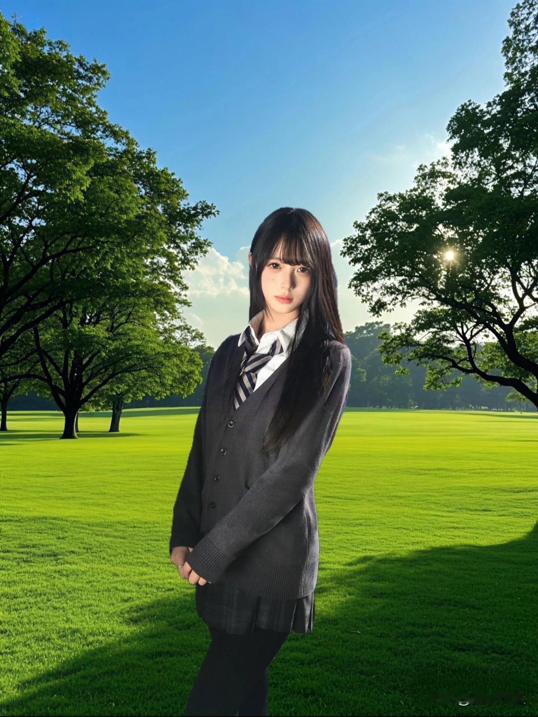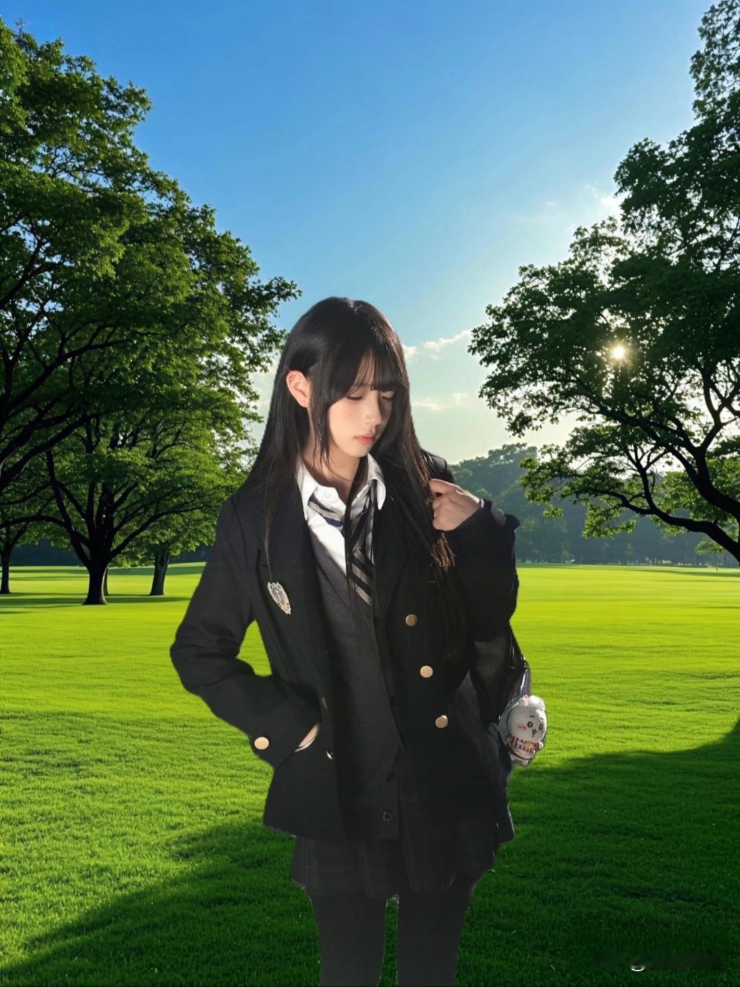 校园少女风,黑发长裙,清新自然,阳光明媚。