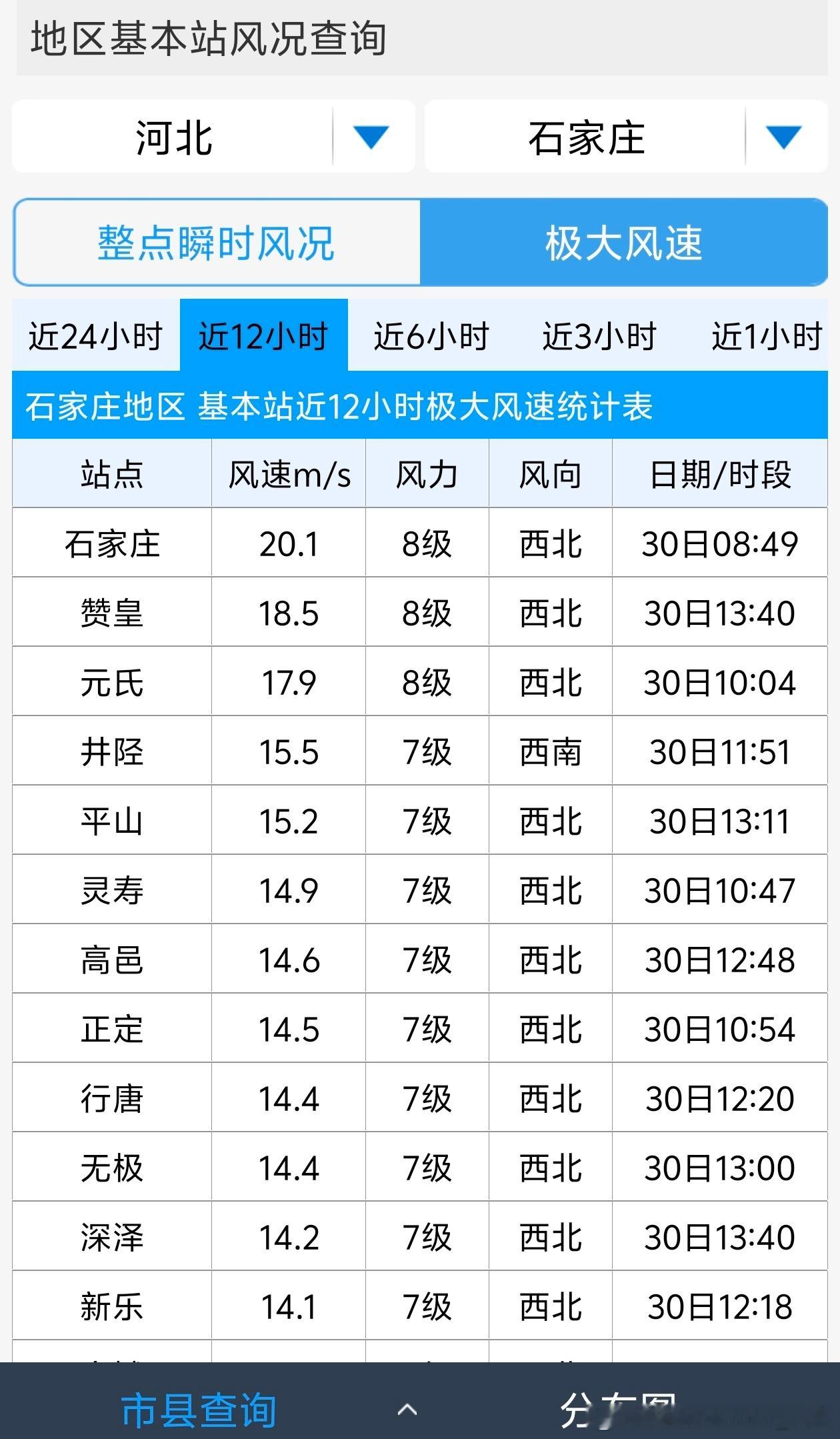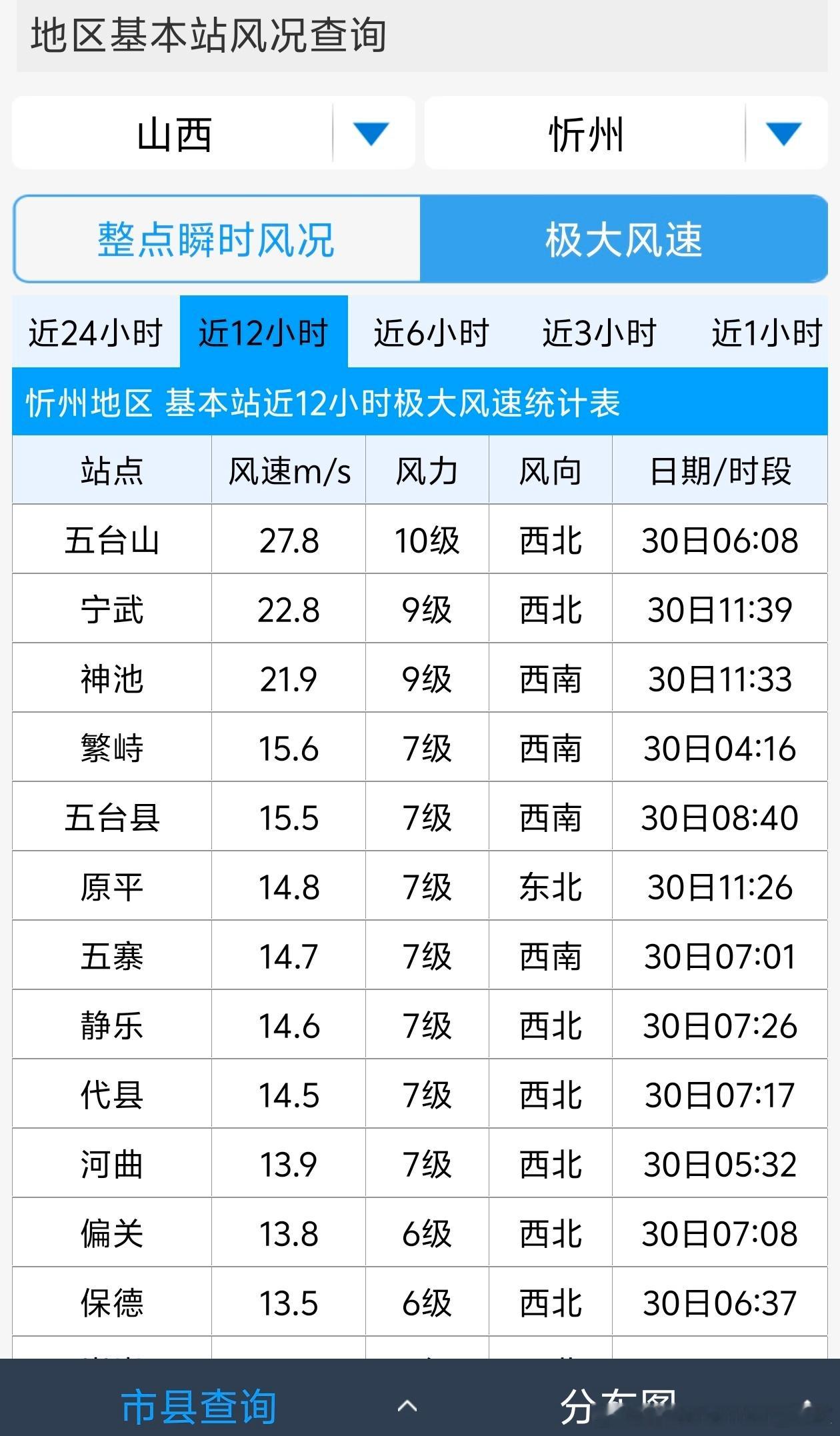 【华北大风】今天华北多地出现大风天气,北京南郊观象台、天津、石家庄、邢台阵风达到了8级。山西五台山阵风10级。此外山西宁武、神池、山阴、河北丰宁、沽源、怀来、阜平、内蒙古正镶白旗阵风9级。