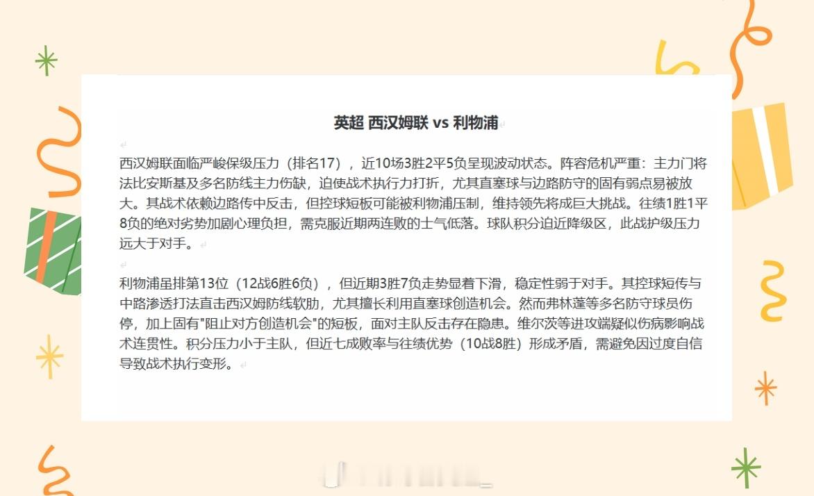 两场情报,希望对各位有所帮助!英超 水晶宫 vs 曼彻斯特联英超 西汉姆联 vs 利物浦