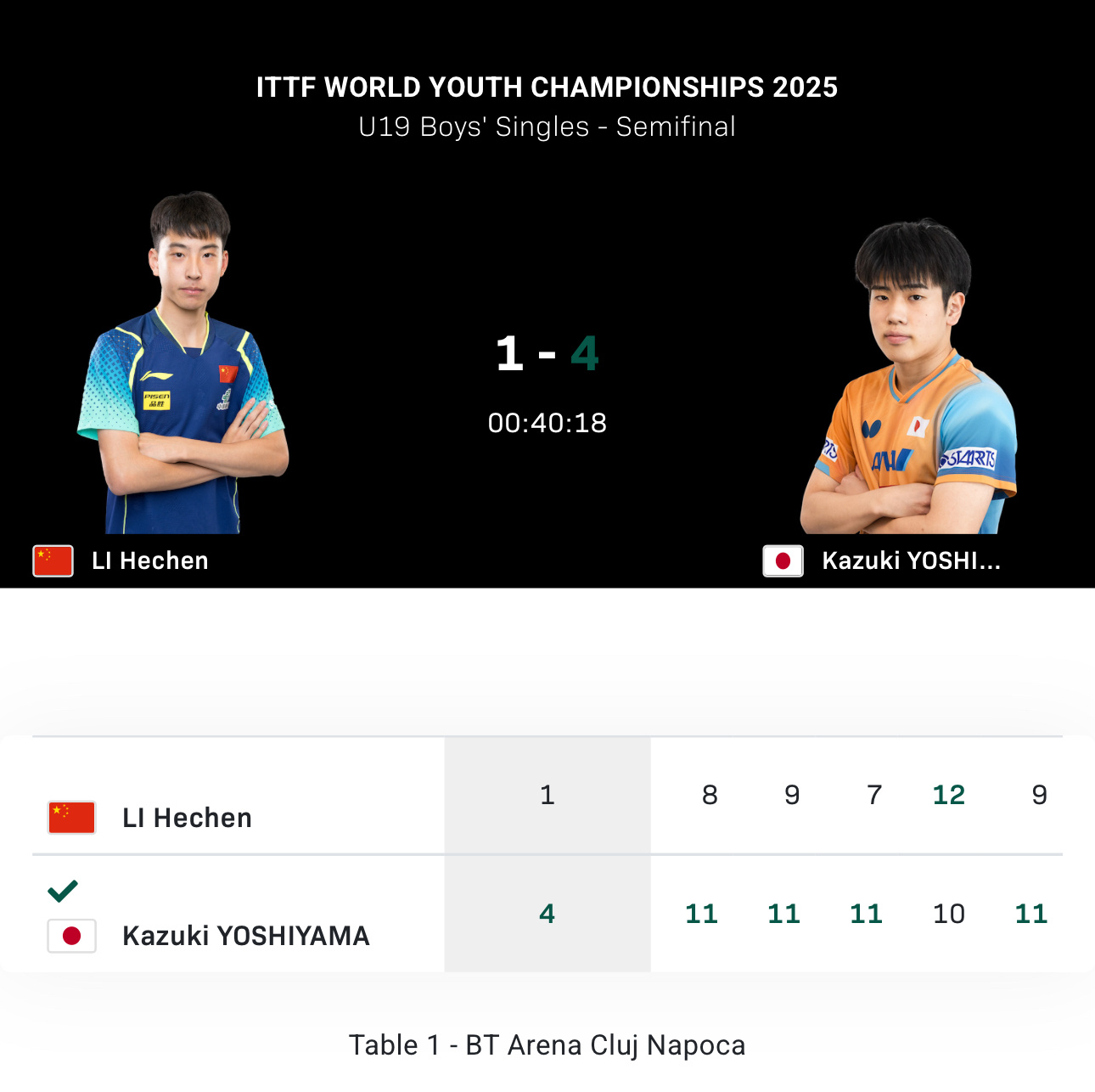 2025世青赛U19男单4-2李和宸1-4吉山和希不意外 就这水平