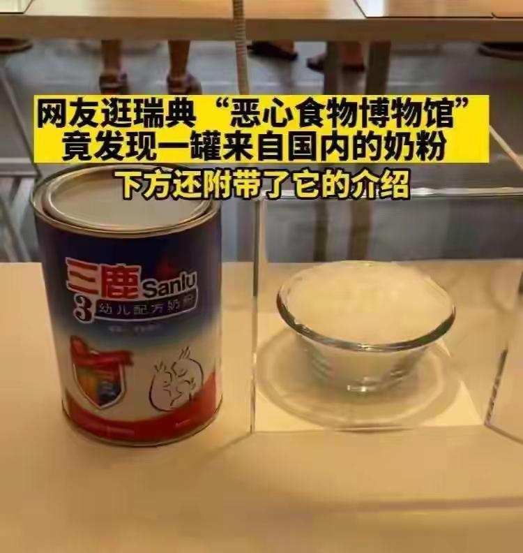 臭名昭著的三鹿奶粉, 至今还在瑞典的恶心食物博物馆作展览, 无数国人看了直言无比