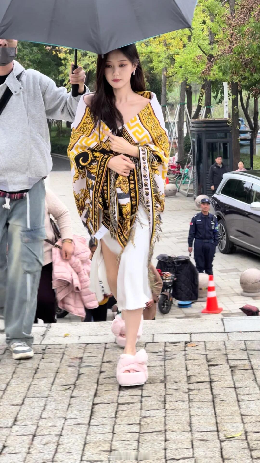 吴艳妮在成都穿着短裤大腿看起来很粗壮,表情自信又张扬