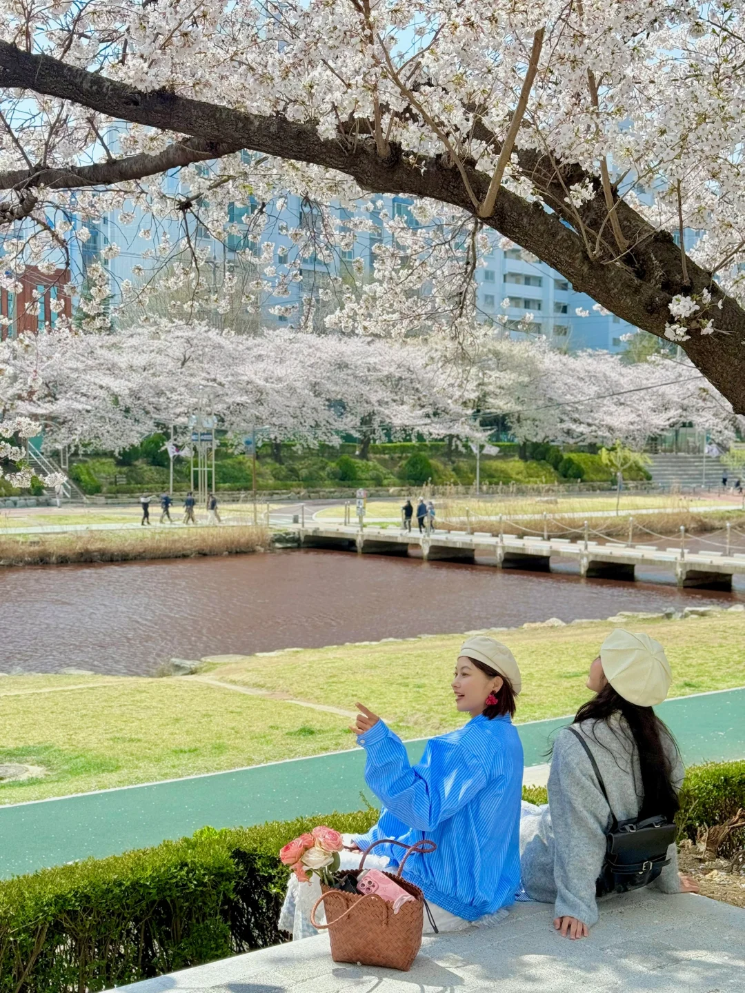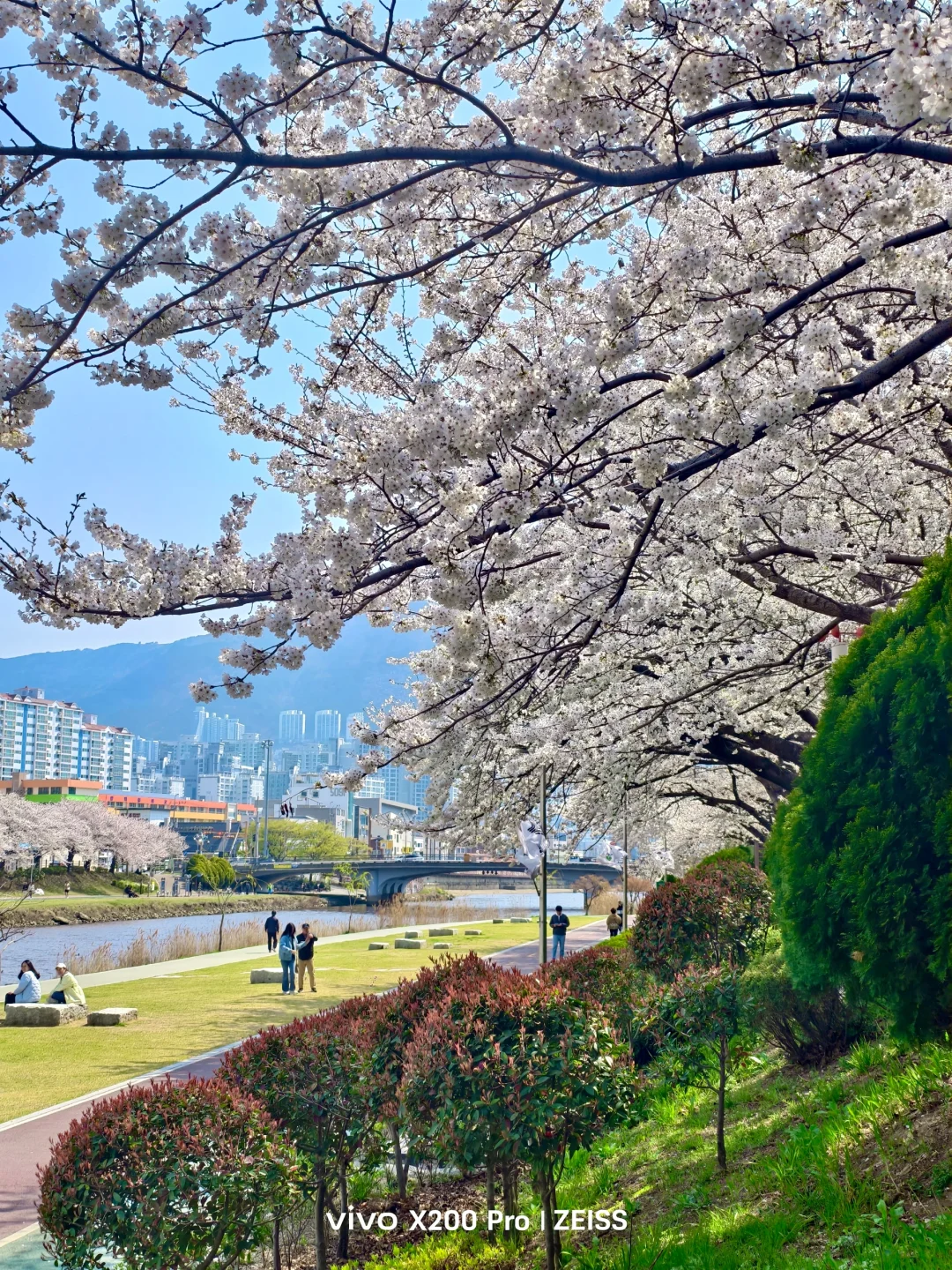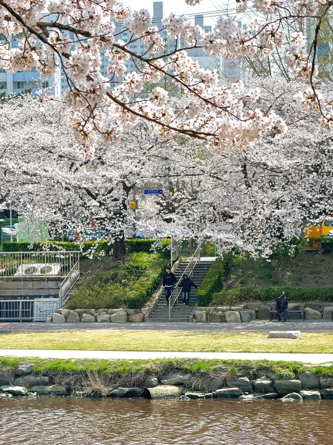 今年樱花季来韩国真是来对了 整个城市樱花树随处可见,真的有被狠狠惊喜到 比起日本樱花季人挤人,在这里赏樱真的很惬意 特别釜山的樱花真的超多 基本几步一棵,转角就能遇到连片樱花路 - 而比起开琴路,迎月路等一些热门的樱花打卡点 让我zui惊艳的还是这里! 一公里多的河道两旁都是樱花树 走在树下,风一吹,便是一阵浪漫樱花雨 河流、草坪、栈道、咖啡街 还有玩耍的小狗,散步的居民,怡然自得的鸭子…… 氛围特别惬意悠闲,韩剧感快溢出屏幕了 随手拍都出片的程度 而且来的基本只有本地人,鲜少有游客,不需要排队等机位 - 📍谷哥定位导航:釜山温泉川市民公园 - 📷拍照小tips ✔️手机vivo X200 Pro实拍📱 ✔️图片拍摄于2025.4.4,我是11点左右到的,拍到了下午一点多两点,基本已经是满开的程度,特别好看,可以直接冲 ✔️这里距离海云台、广安里都很近,可以把行程安排在一起 -