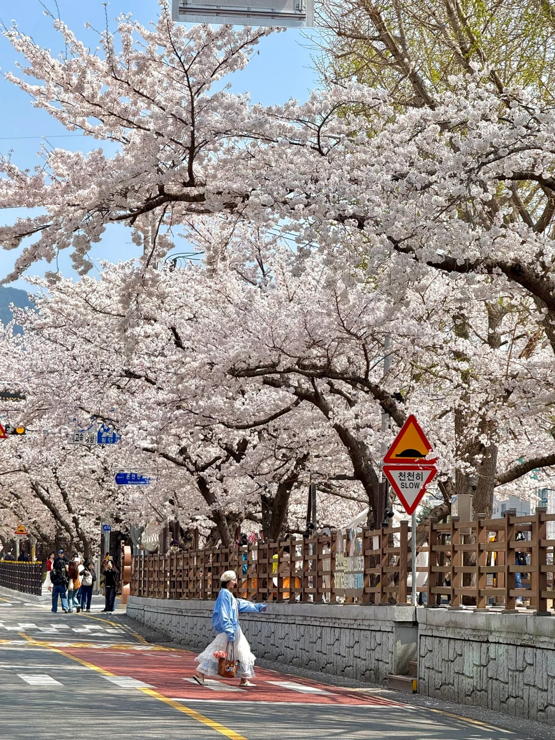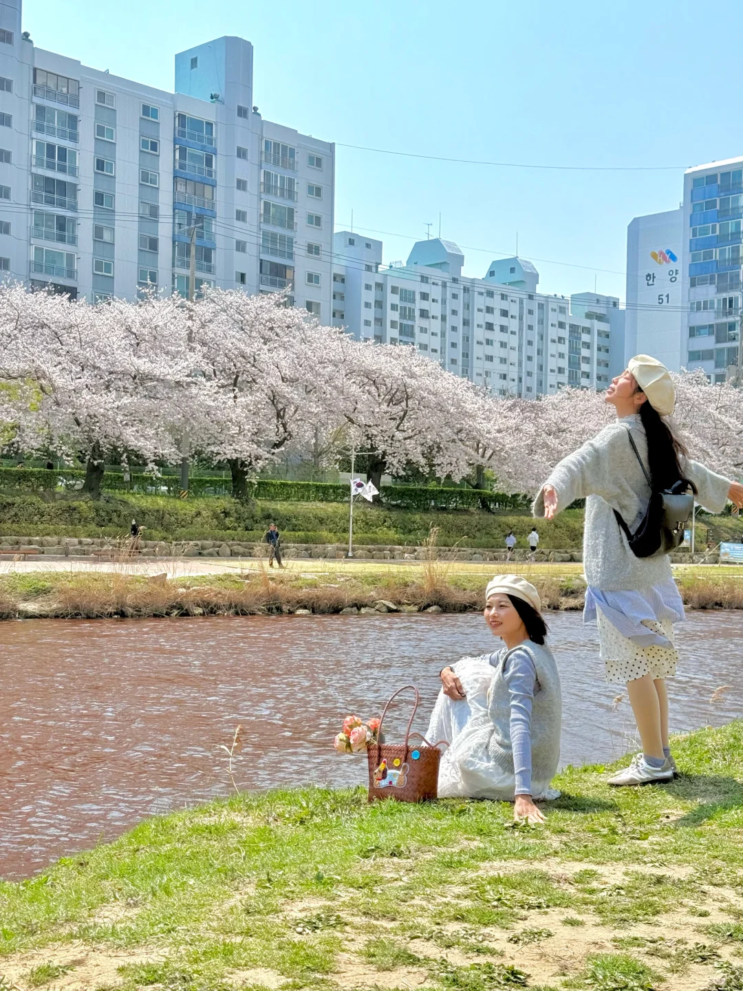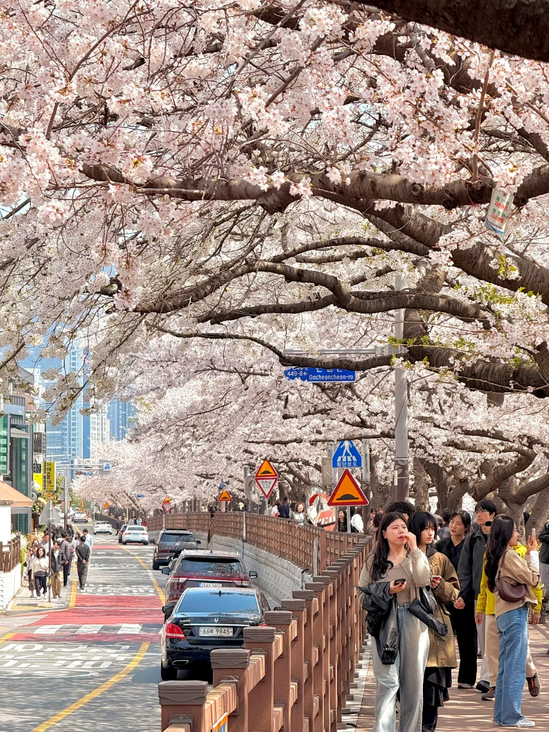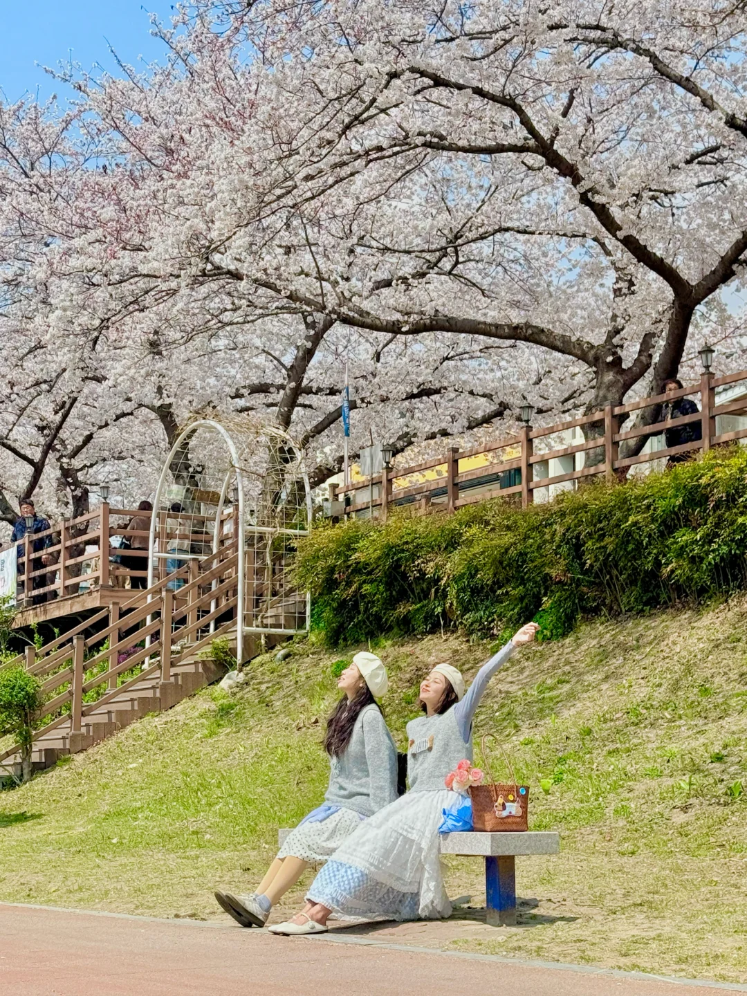 今年樱花季来韩国真是来对了 整个城市樱花树随处可见,真的有被狠狠惊喜到 比起日本樱花季人挤人,在这里赏樱真的很惬意 特别釜山的樱花真的超多 基本几步一棵,转角就能遇到连片樱花路 - 而比起开琴路,迎月路等一些热门的樱花打卡点 让我zui惊艳的还是这里! 一公里多的河道两旁都是樱花树 走在树下,风一吹,便是一阵浪漫樱花雨 河流、草坪、栈道、咖啡街 还有玩耍的小狗,散步的居民,怡然自得的鸭子…… 氛围特别惬意悠闲,韩剧感快溢出屏幕了 随手拍都出片的程度 而且来的基本只有本地人,鲜少有游客,不需要排队等机位 - 📍谷哥定位导航:釜山温泉川市民公园 - 📷拍照小tips ✔️手机vivo X200 Pro实拍📱 ✔️图片拍摄于2025.4.4,我是11点左右到的,拍到了下午一点多两点,基本已经是满开的程度,特别好看,可以直接冲 ✔️这里距离海云台、广安里都很近,可以把行程安排在一起 -