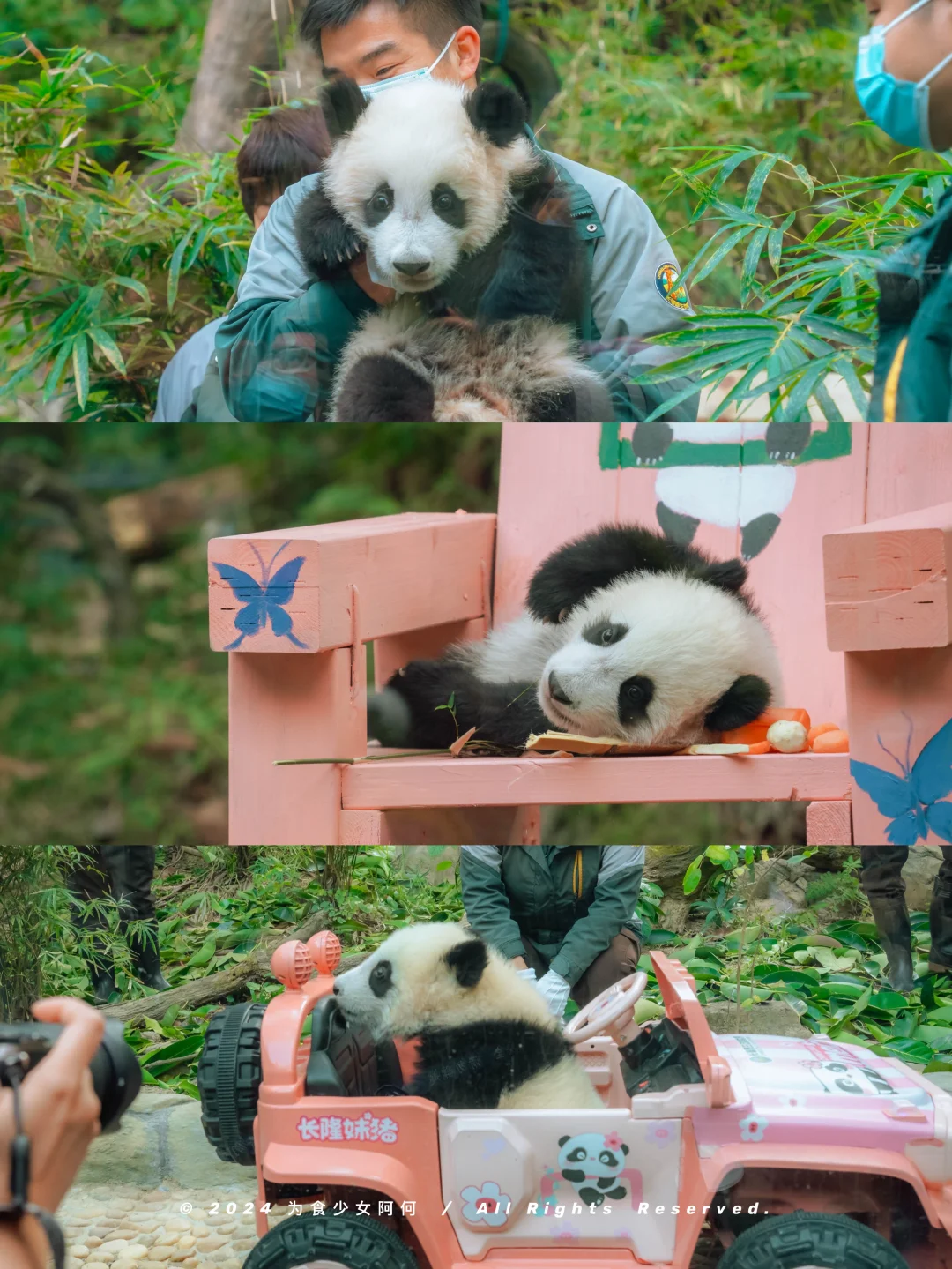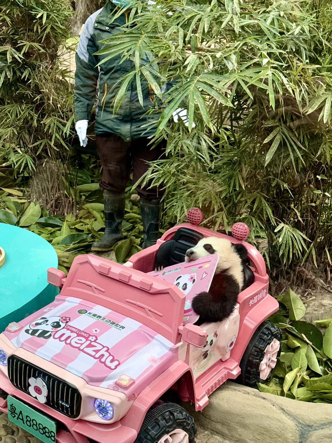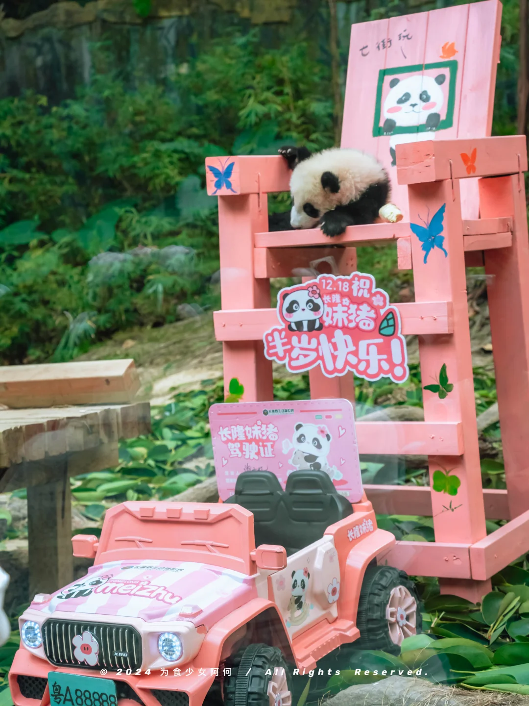 起因是,我们粤圈顶流广府千金🐼长隆妹猪猪半岁啦! 从一只小粉粉到现在经常上串下跳活泼越狱的小辣椒 太可喜可贺啦!🎉 而且在半岁这天,还特意邀请了一众ee蜀黍来长隆野生动物世界庆祝哦~ - 之前妹猪满月和百日的时候长隆也按照广东本土习俗庆祝 这次半岁宴还是一如既往的满满的仪式感 只有你想不到,没有长隆做不到的宠爱! 现场不仅给妹猪进行了半岁体检仪式 仅半年时间妹猪就从出生128g到现在的10.88kg,每天都在健康快乐的长大! 对待掌上明珠,长隆也十分大气地安排上 龙椅、生日餐、全新主题曲 面对一众媒体的长枪短炮,妹猪也是毫不怯场 给足大家面子,“都不白来~” 怪不得长隆还在妹猪半岁这天安排了一个新身份 ——妹猪小卖部猪理人,再也不用越狱趴窗点单啦~ 小卖部就在妹猪和萌萌所在的熊猫中心 不仅安排了邮筒,可以给妹猪写生日祝福㊗️明信片 还设立粉丝区,让熊猫粉丝交换妹猪的物料 还有好多妹猪仔相关的的新周边哇~ 玩偶、头箍、冰箱贴、行李牌卡套… 既然带不走猪妹,那就带点周边回去吧~ 荣升老板的妹猪更是喜提“粤A88888”的豪车 以后就可以带上驾照“7街玩”啦~ - 同步附上一条快速看妹猪的路线 想来看妹猪以及一众熊猫的赶紧码下这份攻略: ▪️北门进园后走200m到缆车天鹅湖站,就能坐缆车直达熊猫乐园站 ▪️熊猫村开门时间上9:45,这个时候进去基本是熊猫们活跃的干饭时间,不仅人少,而且能看他们吃播 ▪️11:30是妹猪和萌萌所在的熊猫中心开放时间,可以排队看妹猪,每轮限时3分钟,可以无限次排队重复看,中午时分人会比较少,基本不用排队或者队伍很短 ▪️下午2-4点是熊猫加餐时间,下午这个时间段来也是能看熊猫活跃的一面 ▪️缆车天鹅湖-熊猫乐园站中间有一段可以看到空中熊猫 - 最后!参加妹猪半岁宴回来以后 已经被妹猪的主题曲洗脑啦! “妹猪仔 妹猪仔,得戚熊猫够晒威,刁蛮公主唔扭计,快d来长隆睇一睇” 每天都在长隆和EE们宠爱中长大妹猪怎么能错过! 小小年纪就拥有数不清的有趣时刻 这么可爱有梗的妹猪🐼怎么能错过她的成长呀! 一定要常来哦,说不定轻轻松松解锁新的名场面~ -