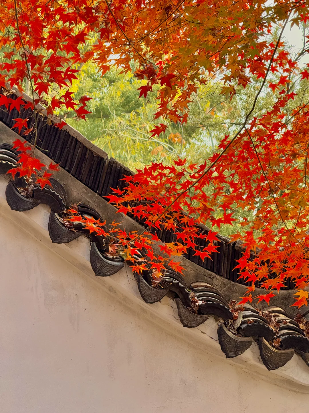 🔸冷香阁(图1、):过了海涌桥,穿过山门,从左边的院子走石上的阶梯上行,就能到达网红波浪墙红枫长阶,再往上走到冷香阁,回头可以用门框框住红枫
