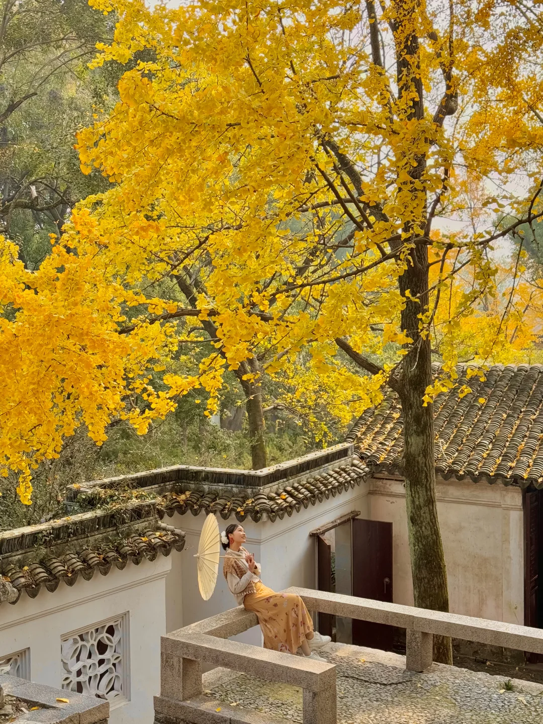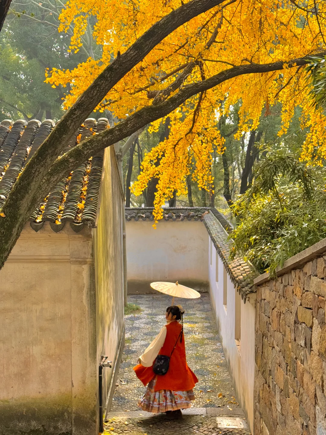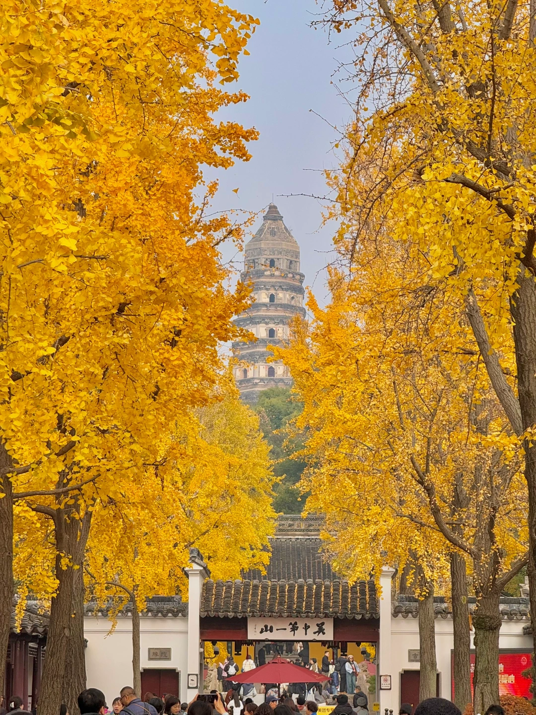 🔸南门:通往入口的是一条很壮观的银杏大道,可以透过银杏叶拍虎丘塔和"吴中第一山"牌坊