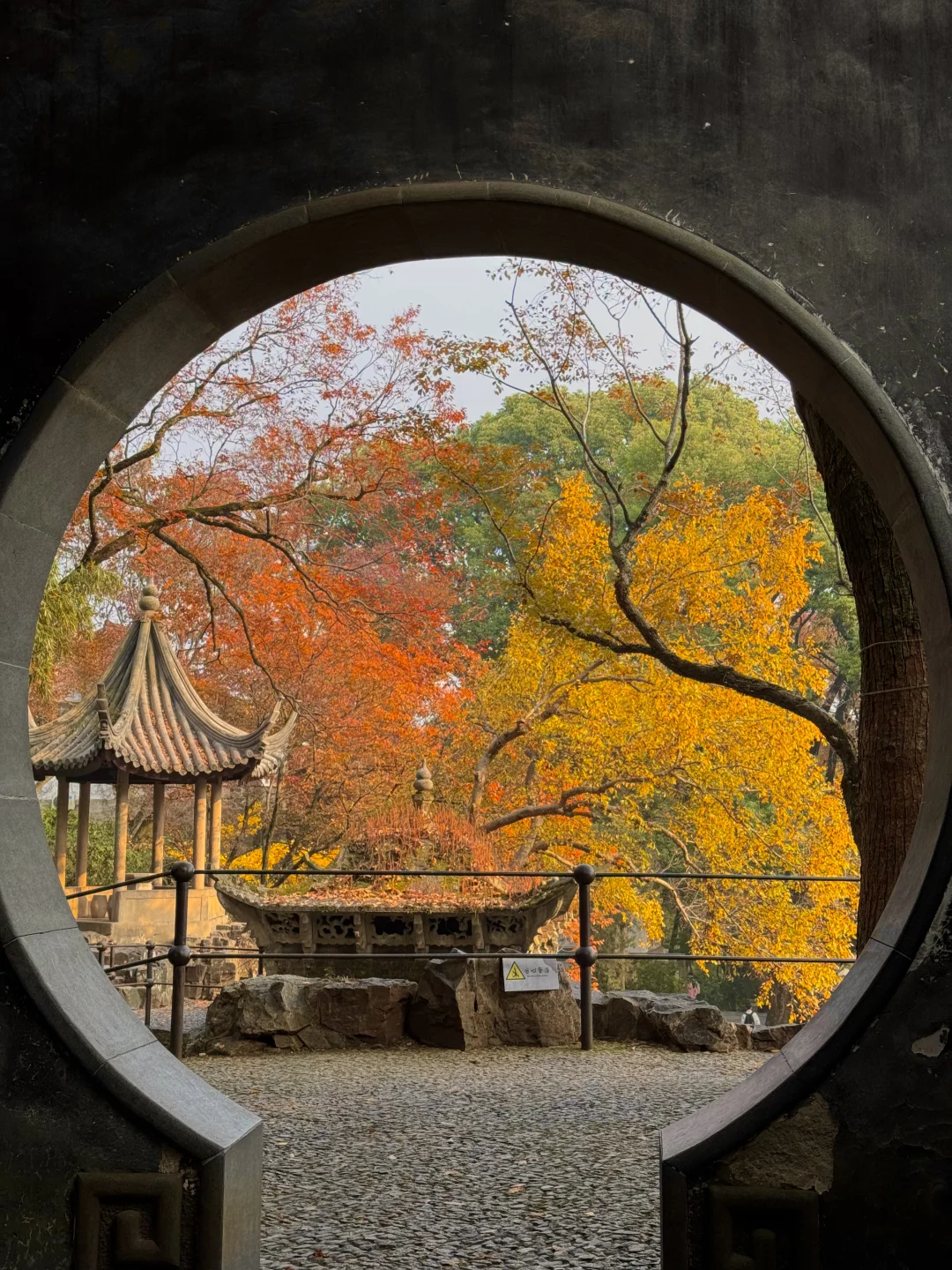🔸第三泉:很经典圆形门机位,圆拱门把亭子和红黄交杂的秋景都框住了