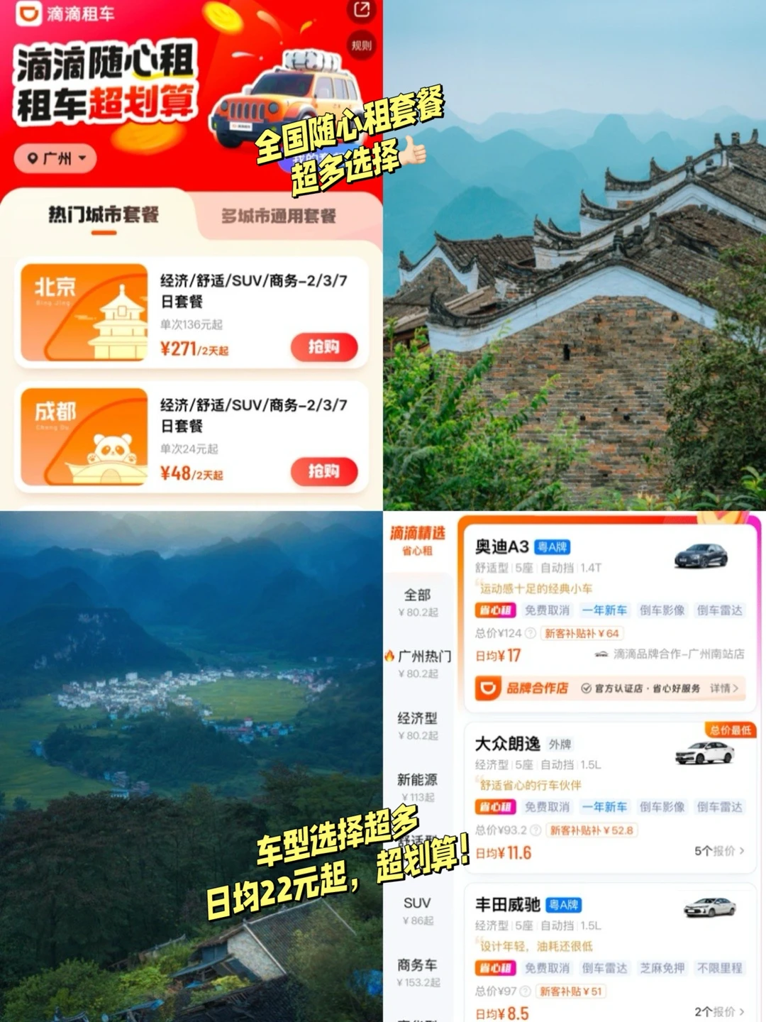 ▪️全国随心租套餐也超划算的,单日最低22元起👍🏻全国多地热门城市套餐可选,年底快乐出游不要错过这波福利啦~去滴滴小🍊xu或A.P.P上薅🦙