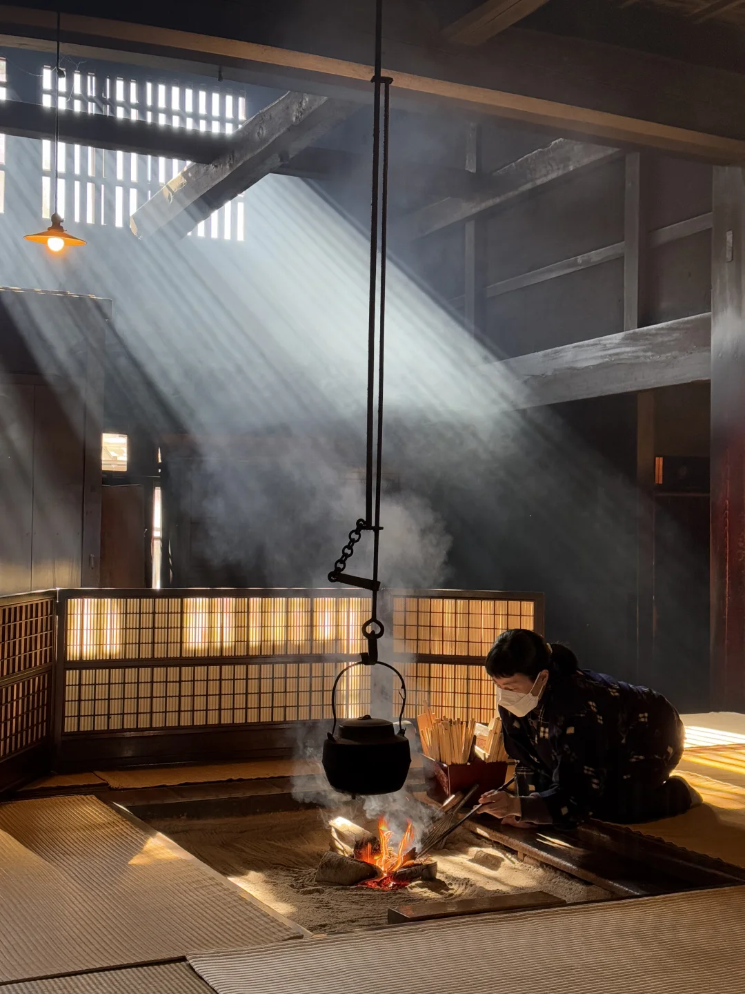 🔸胁本阵奥谷:妻笼宿的重要历史建筑,建于明治时期,每年秋分过后,阳光会从木窗户照进房间内的围炉边,很多摄影师都为了这个秋冬限定画面从世界各地赶过来