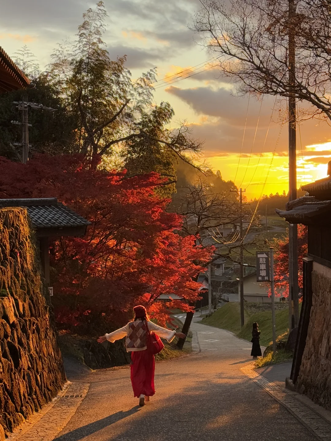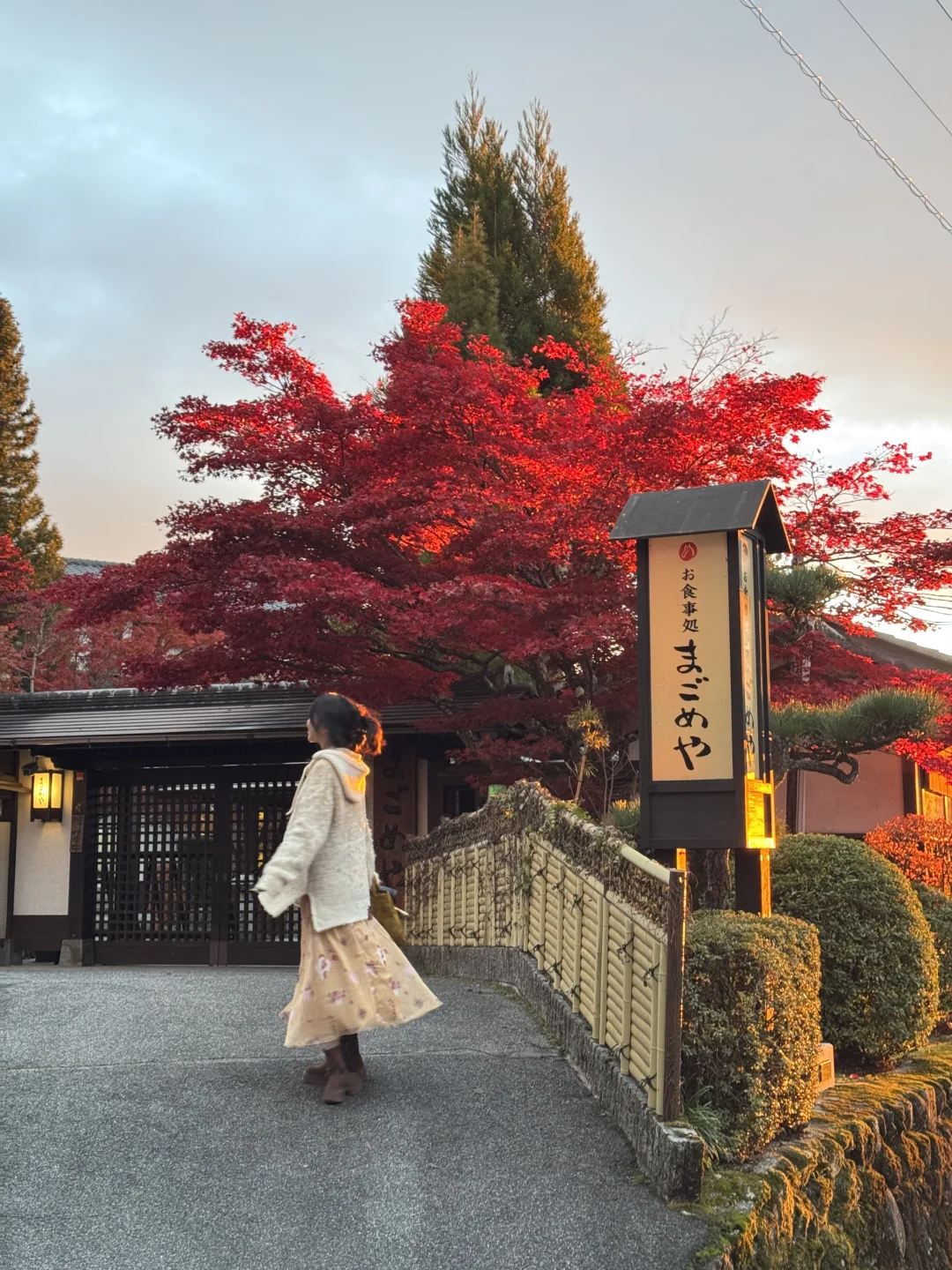 🔸まごめや:马笼宿山脚下被红叶包围的一家荞麦面店,无论庭院还是窗外的红叶景观都超美!特别是后面停车场旁边延伸至村庄的小路,夕阳红叶绝了