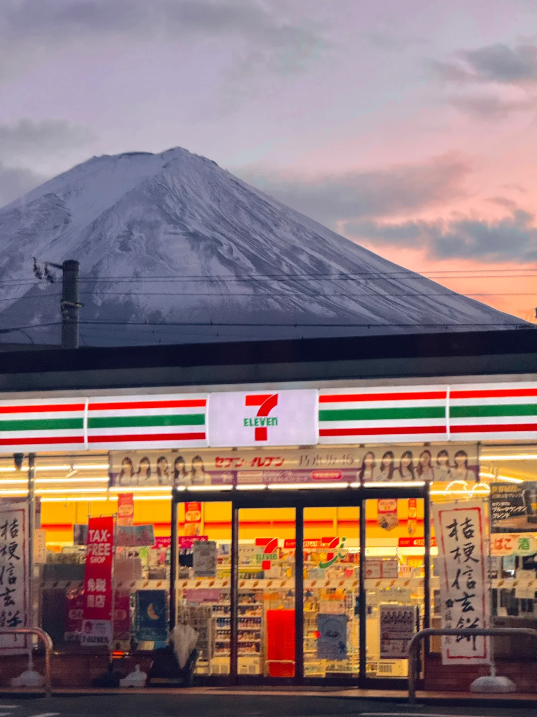 河口湖车站出来右转走15分钟,711傍晚亮灯后不输罗森的机位