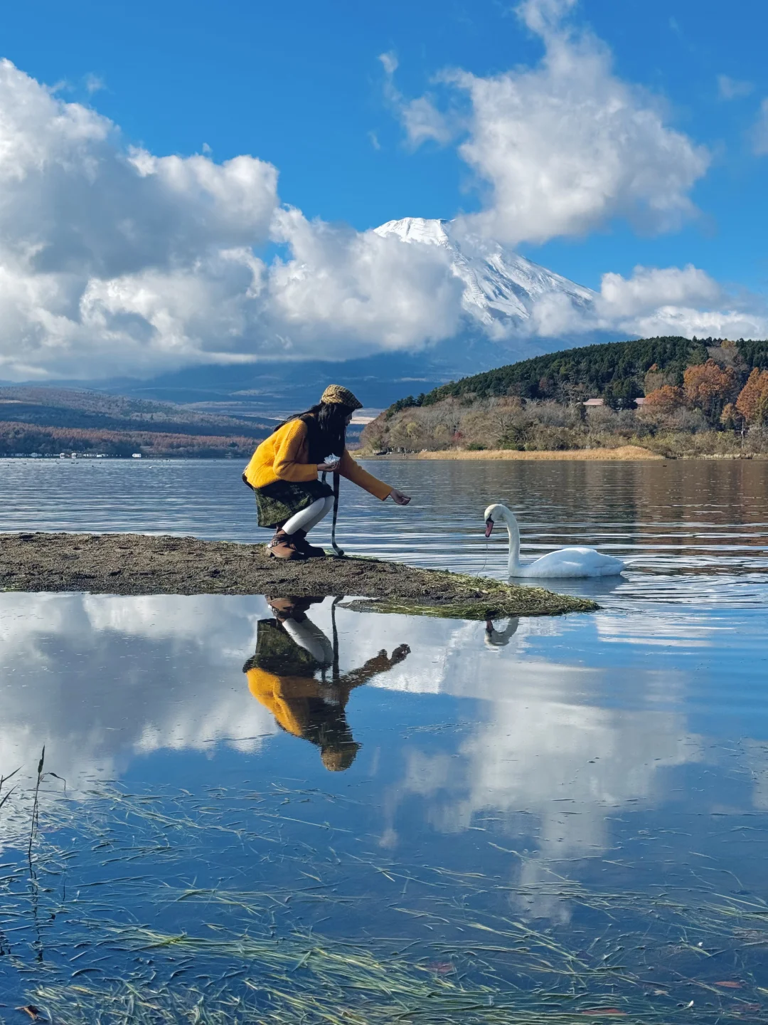 山中湖白鸟滨这里可以拍富士山下的天鹅湖,利用水面倒影很出片~河口湖和箱根都有公交🚌去,建议在那里住一晚,天晴时日出更美