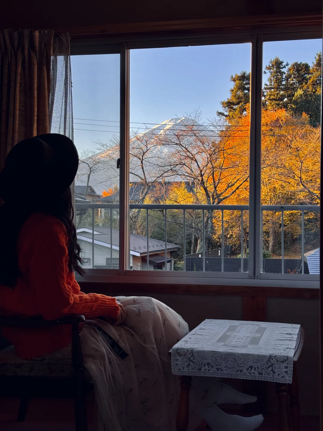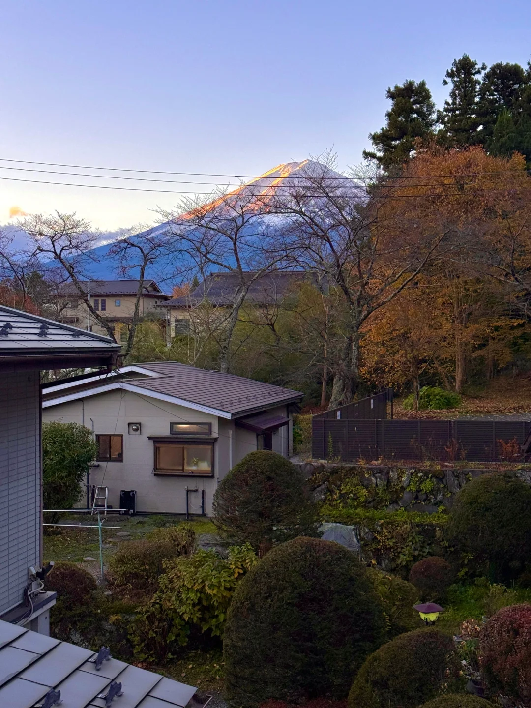 没想到今天一早6点半打开窗,一整个富士山就在眼前