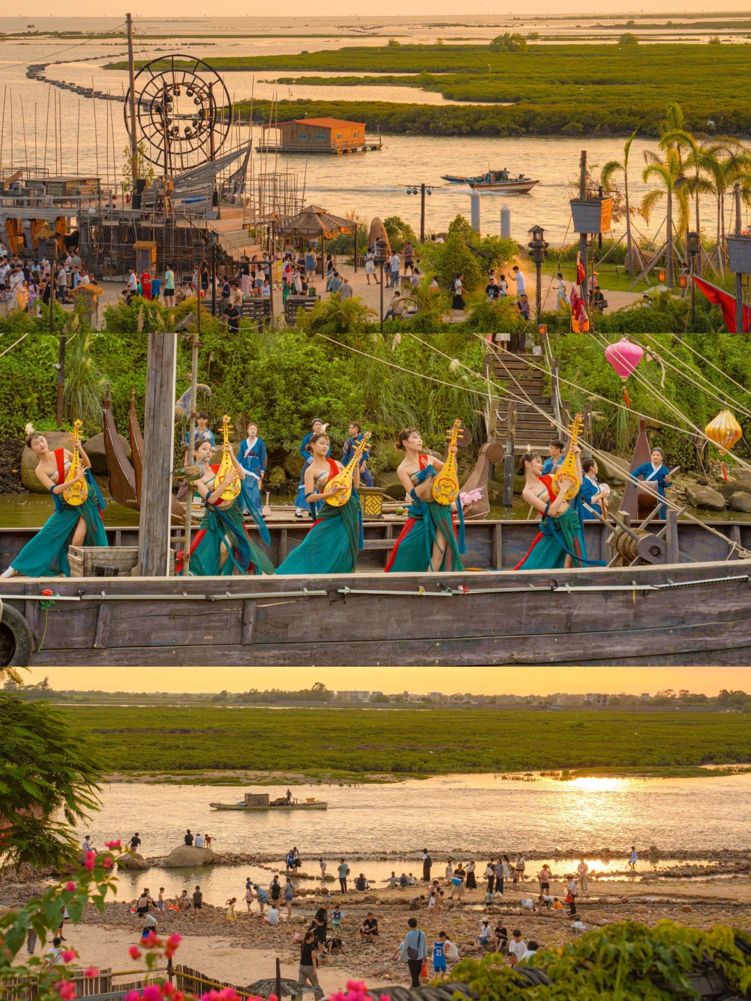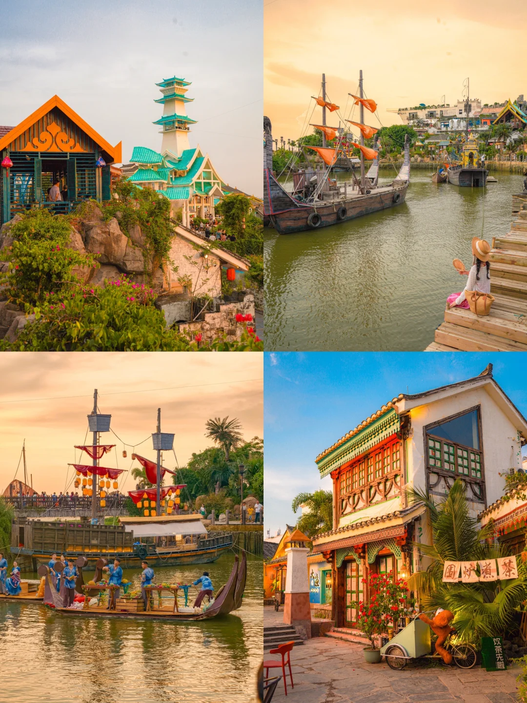 发朋友圈,都在问是不是去东南亚了 其实我在广西北海啦~北海不只有涠洲岛 这里还拥有着一个千年历史的古港 是汉代海上丝绸之路的始发港之一 白天这里各种东南亚风建筑在蓝天白云的映衬下 犹如闯入了动漫里的世界,随手一拍都是大片 落日余晖下,赶海沙滩和红树林海湾又犹如金绸般浪漫 夜幕降临灯光亮起,落日大合唱、水上市集、花车巡游、烟花盛宴… 仿佛闯入现实版寻梦环游记,太震撼! 来北海旅游,强烈建议留一天给这里 - 📷打卡景点 🔸始发港:船只停靠的港口,日落时分,落日大合唱、水上市集、南国版花车巡游、络绎不绝的游人,仿佛穿越到千年前的繁华贸易港口!这里还是看晚上演出的地方:烟花秀、打铁花、海上演唱会、大型歌舞 🔸首港古堡:广西版“海上布达拉宫”,拍照特别出片,古堡前面的草坪广场还可以喂鸽子和骑马 🔸海镜台:巨轮般的大楼,登上顶层的玻璃栈台,可以俯瞰整个海丝首港 🔸西门叮:穿过树梯到达,很有漫画感的海上灯塔 🔸入海滩:打卡红色布鲁斯号,这里还能体验摸鱼抓虾的赶海乐趣 - 🎆不能错过的夏日演出 ✅《水与火之歌》:全景交互的大型实景演出,重现千年前商船启航的盛况,各种灯光、水幕,演员化身汉代商贩、水手在身边穿梭,超沉浸式体验 ✅海上烟花秀+非遗打铁花:视觉盛宴,浪漫到让人窒息 ✅海丝首港落日合唱夜:迎着日落大合唱,还有水上市集,瓜果花车巡游 ✅除此之外,还有灯光秀、夜浪港迪狂欢派对、千人烟花舞等演出,真的越夜越精彩 - 📍北海海丝首港 🚄高铁到合浦站,打车10分钟 - 🌈游玩tips ✔暑期景区开放时间:早上10:30-凌晨01:00,建议下午3点后到达,避开正午太阳 ✔建议入一张来北海坐坐的旅行联票,158/人就包含了海丝首港+银滩海洋公园+海境时尚馆+银滩上的沙滩太阳伞+礁石艺术馆等,三天通用 -
