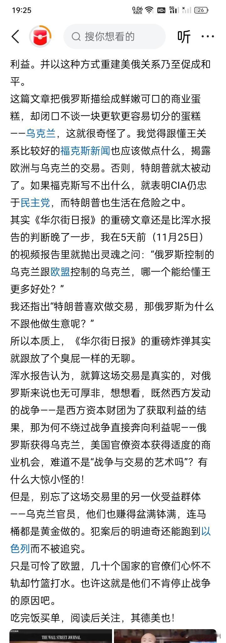 好机会? 网络上有文说,美国的《华尔街日报》发表了试图定性“俄罗斯利用商业利益收买特朗普”的6000字文章,其文中好主要意思就是俄罗斯利用商业利益收买特朗普,以及与特朗普关系密切的商人。 上面所述好像并无真凭实据,不过是政治斗争中惯用的诋毁和损害名誉的行为和伎俩。所以,该网文在后面表示:在本质上,《华尔街日报》的重磅炸弹其实就像放一个臭屁一样的无聊。 既然是如此,特朗普似乎应该是拥有充分的理由起诉《华尔街日报》,诉求高额的名誉赔偿。但是,特朗普以后究竟是否会起诉《华尔街日报》,目前无从得知。