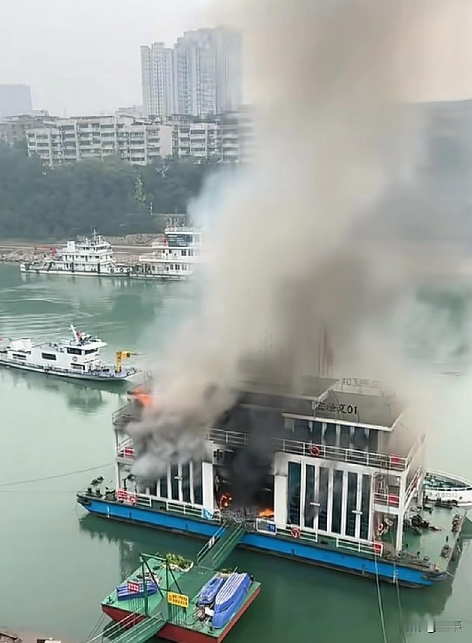 突发,宜宾合江门一趸船发生火灾,火情已扑灭!无人员伤亡,多部门火速处置。 11月30日,宜宾合江门金沙江水域的“宜渔趸01”趸船突发火情——浓烟裹着明火从船身腾起,岸边和周边船只都能清晰看到这一幕。 好在当地公安、消防等多部门反应极快:13时40分火情发生,14时15分就已将明火扑灭,全程无人员受伤!目前起火原因还在进一步调查中。 城市里的突发状况总让人揪紧心,但及时的处置和“零伤亡”的结果,也算是给大家吃了颗定心丸~