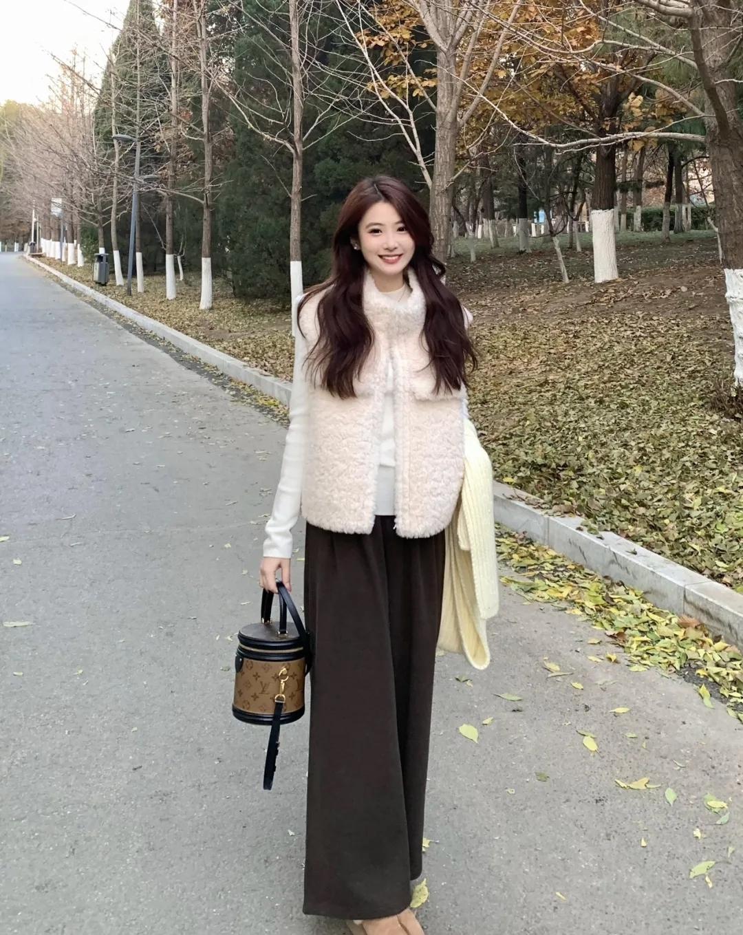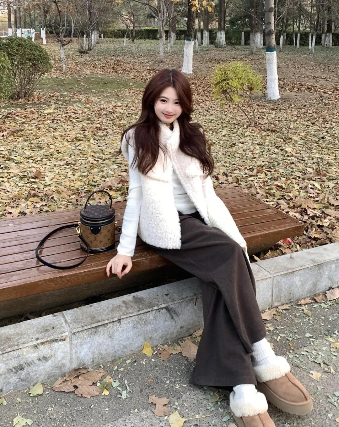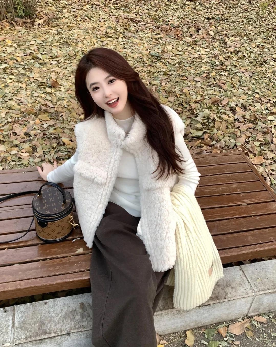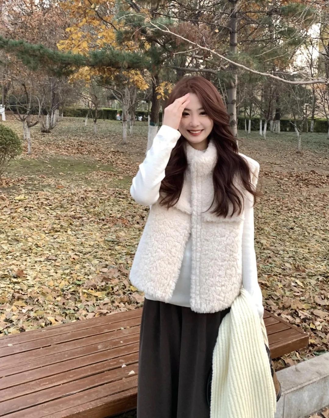 秋意裹在风里,落叶铺成柔软的底色。毛绒马甲裹着暖意,连空气都浸着松弛的甜——是属于季节的温柔碎片呀~