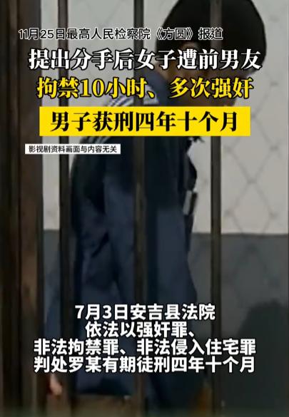 浙江安吉,一女子与男友感情破裂后提出分手,可男友却以“求复合”为名多次持刀威胁,后来更是将女子关在家里10多个小时不让外出,甚至还多次强行发生关系。女子报警后,男友辩解称只是情侣间的吵架,发生关系也是自愿的,但警方还是对男子采取了强制措施。(来源:930老友记) 女子叶某和男子罗某本是一对情侣,但在这段关系中,叶某从男友身上更多感受的不是关爱,而是害怕,罗某的控制欲实在太强了。 最终叶某忍不住提出了分手,可谁曾想,罗某不仅拒绝分手,还用强行闯入叶某的出租屋,用水果刀抵着叶某的脖子威胁:“你敢分,我就让你后悔一辈子!” 叶某当时被吓得赶紧说:“再想想”,才勉强躲过了一劫。可让叶某没想到的是,“再想想”换来的不是平和,而是更疯狂的报复。 之后,罗某对叶某的控制欲达到了顶峰,让叶某透不过气。叶某实在无法忍受,第二次提出了分手。 这下是彻底激怒了罗某,罗某直接拽住叶某的胳膊,将她拖入屋内一顿虐待。当晚罗某带叶某去餐厅吃饭,罗某还掏出兜里的碎瓷片,抵在她的脸部,压低声音威胁道:“你敢喊人,我就敢划花你的脸”。 叶某被罗某给吓到了,话都不敢说,只得闷头吃饭。二人吃完饭后,罗某将叶某拽回家中,之后不管小叶怎么哭、怎么求,罗某还是多次强行和叶某发生了关系。 后来叶某趁着罗某不注意,偷偷报了警,这才得以脱困。当警察赶到时,小叶严格上来说已经被罗某拘禁了整整10小时,她的脖子上还留着刀划过的红印,手腕因为被禁锢而一片青紫。 到案后,罗某始终不承认有罪,他坚称与叶某是情侣,发生关系时叶某也没有反抗。 为了让罗某承认罪责,警方经过走访调查后,获取了邻居的证言、餐厅的监控等证据,这下罗某也不得不招认了。 那对于罗某的行为该如何定罪? 首先,罗某的行为构成非法侵入住宅罪。 《刑法》第245条规定,非法搜查他人身体、住宅,或者非法侵入他人住宅的,处3年以下有期徒刑或者拘役。 原本罗某是叶某的男友,叶某也允许他随时进入出租屋,但自从叶某提出分手后,二人的恋爱关系已经破裂,那罗某在进入叶某的出租屋就必须征得同意。 罗某不仅强闯叶某出租屋,还持刀威胁叶某,该行为符合非法侵入住宅罪的构成要件。 其次,罗某的行为还构成非法拘禁罪。 罗某因不同意分手,且为了强迫叶某回心转意,将其关在自己家10个多小时,严重限制了叶某的人身自由。 《刑法》第238条规定,非法拘禁他人或者以其他方法非法剥夺他人人身自由的,处3年以下有期徒刑、拘役、管制或者剥夺政治权利;具有殴打、侮辱情节的,从重处罚。 第三,罗某的行为构成强奸罪。 罗某和叶某即便没有分手,也没有法定的义务和罗某发生关系。目前只有夫妻之间才有义务行夫妻之实,但也有例外,就是在夫妻感情破裂准备离婚时,丈夫强行与妻子发生关系,是有可能被认定为强奸罪的。 具体到本案,罗某只是前男友的身份,他强行与叶某发生关系,自然构成了强奸罪。 《刑法》第236条规定,以暴力、胁迫或者其他手段强奸妇女的,处3~10年有期徒刑。 综上,法院认定罗某构成非法侵入住宅罪、非法拘禁罪、强奸罪,数罪并罚后,处4年10个月有期徒刑。 对于这个结果,有不少网友认为判得太轻了,如此残暴致人,而且强奸了前女友多次,怎么只判了4年? 对此,您怎么看?欢迎留言交流。