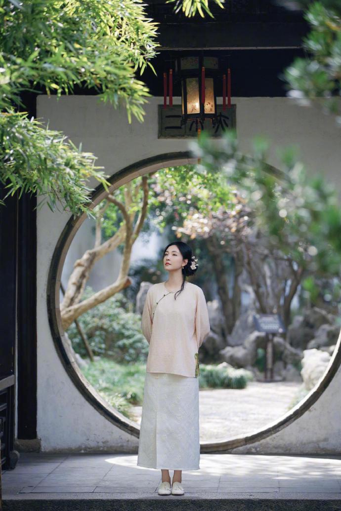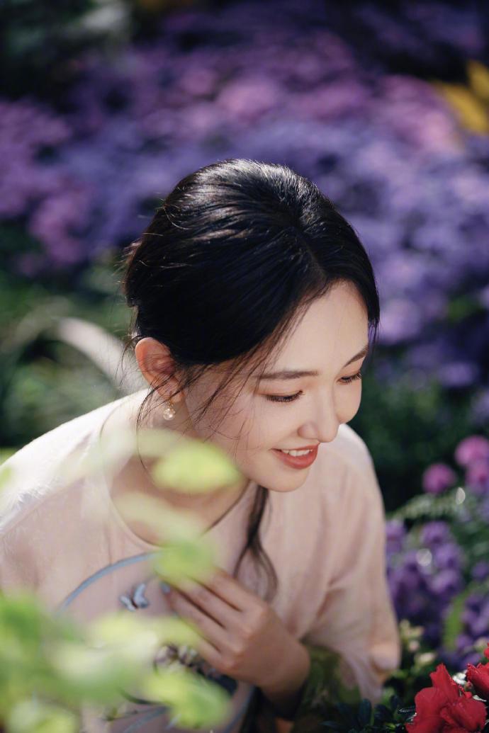 吴倩真的好适合这套新中式风格的照片真好看。 妆造虽简单但很端庄,笑容甜美清新,一切都恰到好处。少女感是很罕见的一种特质,即使吴倩是孩子妈,却依旧不违和。