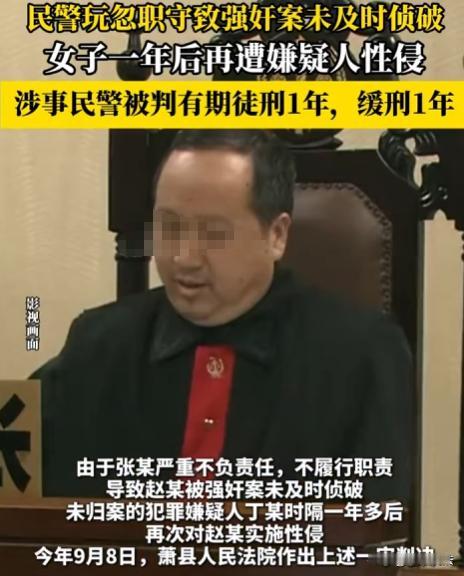 安徽,男子邓某的妻子赵某有中度精神发育迟缓,她告知邓某自己被丁某强奸,邓某随即报警。出警的28岁民警张某带着3名辅警赶到,期间,赵某说丁某没给钱,邓某觉得丢人想撤警,张某竟示意其撤案,事后还隐瞒此事,称不存在犯罪情况,也未按规定汇报、移交案件。结果1年后,未归案的丁某再次性侵赵某,张某这下悲剧了。 邓某的妻子赵某,患有中度精神发育迟缓。 2023年4月30日上午,赵某跟邓某说自己被丁某强奸了,邓某立马报了警。 很快,28岁的民警张某,带着3名辅警来到邓某家了解情况。 这事可把邓某气坏了,自己老婆被欺负,换谁都得火冒三丈。 可谁能想到,后续发展完全出乎意料,张某的一系列操作,直接让事情变得更糟,还把自己给搭进去了。 这过程中,赵某嘟囔着丁某没给钱,邓某一听,觉得这事太丢人,脸上挂不住,就打算撤回报警。 这时候,张某不但没制止,还示意邓某打电话撤案。 这操作,简直让人摸不着头脑,受害者家属要撤案,警察不劝阻,反而帮忙,这合适吗? 之后,张某更是过分,向指挥中心谎称不存在犯罪情况,也没按规定汇报、移交案件。 这就好比一个守门员,看到球过来了,不但不挡,还直接把球门给拆了,让犯罪嫌疑人逍遥法外。 谁能想到,1年后,逍遥法外的丁某又对赵某下手了。 这二次伤害,对赵某来说,无疑是雪上加霜,对邓某一家也是沉重的打击。 好好的一个家,因为张某的失职,被搞得支离破碎。 这事闹大了,好在今年6月,检方以涉嫌玩忽职守罪对张某立案调查。 9月一审法院判决,张某因玩忽职守罪被判有期徒刑1年,缓刑1年。 张某年纪轻轻,本应守护正义,却因失职丢了工作、成了罪犯,太可惜了。 这不禁让人想问,张某身为民警,职责是什么?不就是保护群众吗? 可他倒好,面对可能存在的犯罪行为,不但不积极处理,还示意撤案,隐瞒情况,这到底是怎么想的? 从法律角度看,张某的行为严重违反了相关规定。 他身为执法人员,知道赵某可能被侵害,却示意邓某撤案,隐瞒情况、不汇报移交,导致赵某二次被侵害,这明显是不负责任、失职的表现。 根据《刑法》第三百九十七条规定,国 家 机 关 工作人员滥用职权或者玩忽职守,致使公共财产、国 家 和人民利益遭受重大损失的,处三年以下有期徒刑或者拘役;情节特别严重的,处三年以上七年以下有期徒刑。本法另有规定的,依照规定。 在本案中,张某作为民警,属于国 家 机关 工作人员。他的玩忽职守行为,导致赵某二次被侵害,给赵某及其家庭带来了巨大的伤害,也损害了公安机关的形象和公信力,符合玩忽职守罪的构成要件。 张某示意邓某撤案,这一行为直接导致案件没有得到及时处理,犯罪嫌疑人丁某得以继续逍遥法外。 他向指挥中心谎称不存在犯罪情况,不按规定汇报、移交案件,更是对法律的蔑视和对职责的背叛。 他的这些行为,使得赵某失去了及时得到保护的机会,让犯罪行为得以延续。 从法律上讲,他的行为与赵某二次被侵害之间存在因果关系,应当为自己的失职行为承担法律责任。 有人认为,邓某自己要撤案,张某只是顺水推舟。 这种说法,是站不住脚的。 邓某作为受害者家属,可能因为各种原因想要撤案,但张某作为执法人员,有责任和义务向邓某解释清楚撤案的后果,劝阻其撤案,而不是示意撤案。 有人说,张某可能觉得事情不大,没必要小题大做。 这种想法,是极其错误的。 强奸精神发育迟缓者,这是严重的犯罪行为,必须严肃处理。 张某的轻视和懈怠,是对法律的不尊重,也是对受害者的不负责任。 另外,张某身为公职人员,因故意犯罪被判刑(含缓刑),根据相关规定,还会被开除公职和党籍。 这不仅是对他个人的惩罚,也是对公职人员队伍的一种警示,让其他执法人员明白,必须严格履行职责,否则将付出沉重的代价。 有些执法人员缺乏责任心,对工作敷衍了事,不认真履行职责。 他们可能觉得一些小事无关紧要,却不知道自己的一个疏忽,可能会给受害者带来巨大的伤害。 有些执法人员法律意识淡薄,对法律规定一知半解,不知道自己的行为可能触犯法律。 他们可能觉得自己的行为只是工作上的小失误,却不知道已经构成了犯罪。 执法人员是法律的执行者,他们的行为直接关系到法律的尊严和公平正义。 如果执法人员都不能严格遵守法律,那么法律的权威何在?公平正义又该如何保障? 希望这件事,能让他们明白,自己的职责重大,必须严格履行职责,保护好群众的合法权益。 执法人员肩负着维护公平正义的重任,他们的每一次决策、每一个行动,都关系到群众的切身利益。