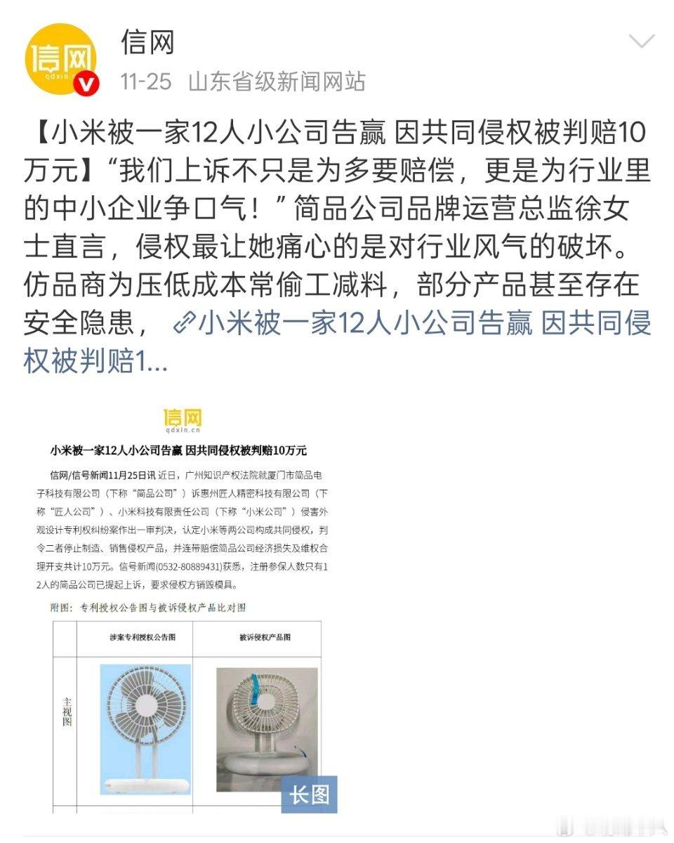 这几天看到了这个案件的判决,期待小米的回应。