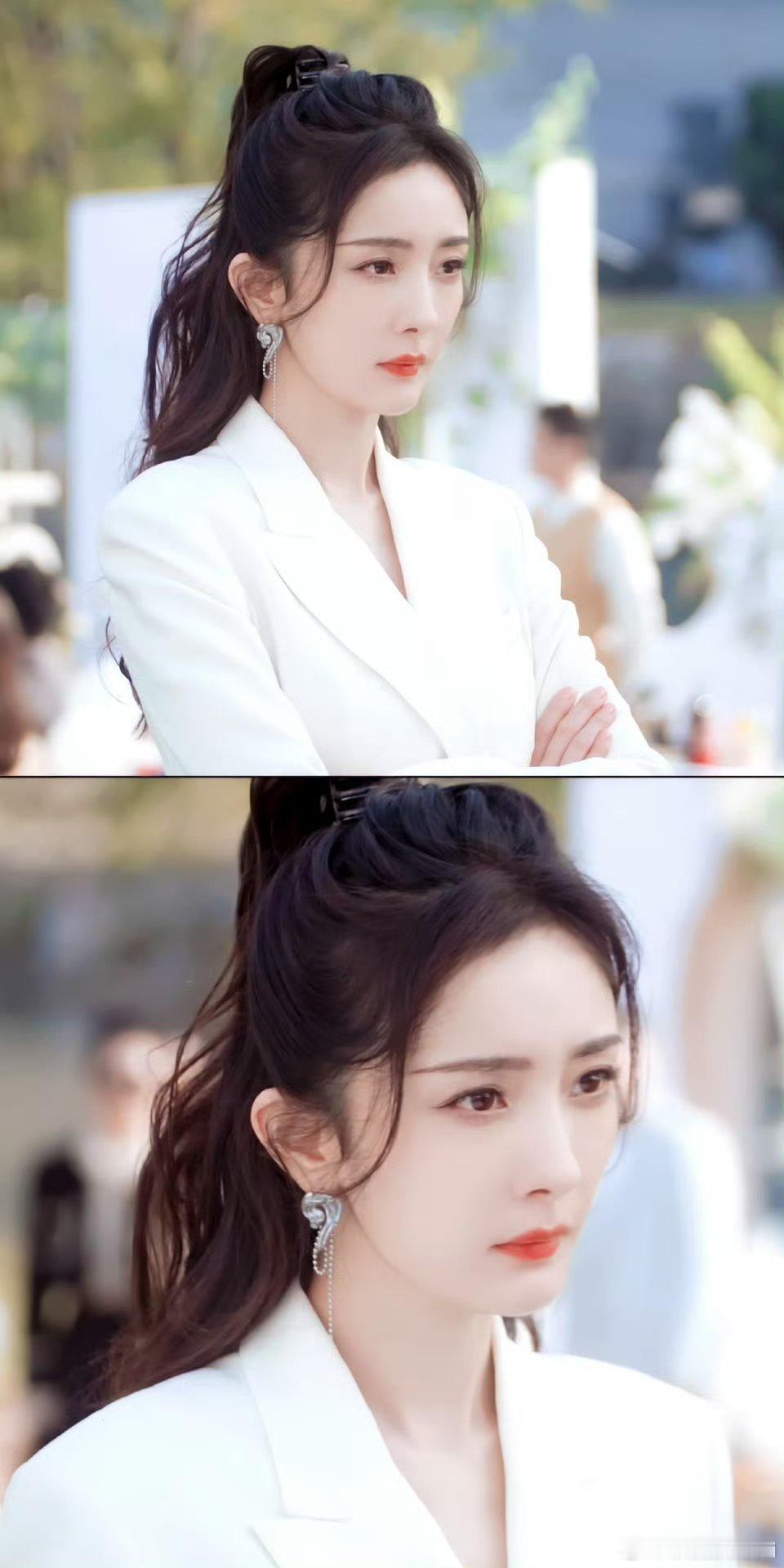 来一组现代版的涂山红红,杨幂的这个白色西装真的好冷艳
