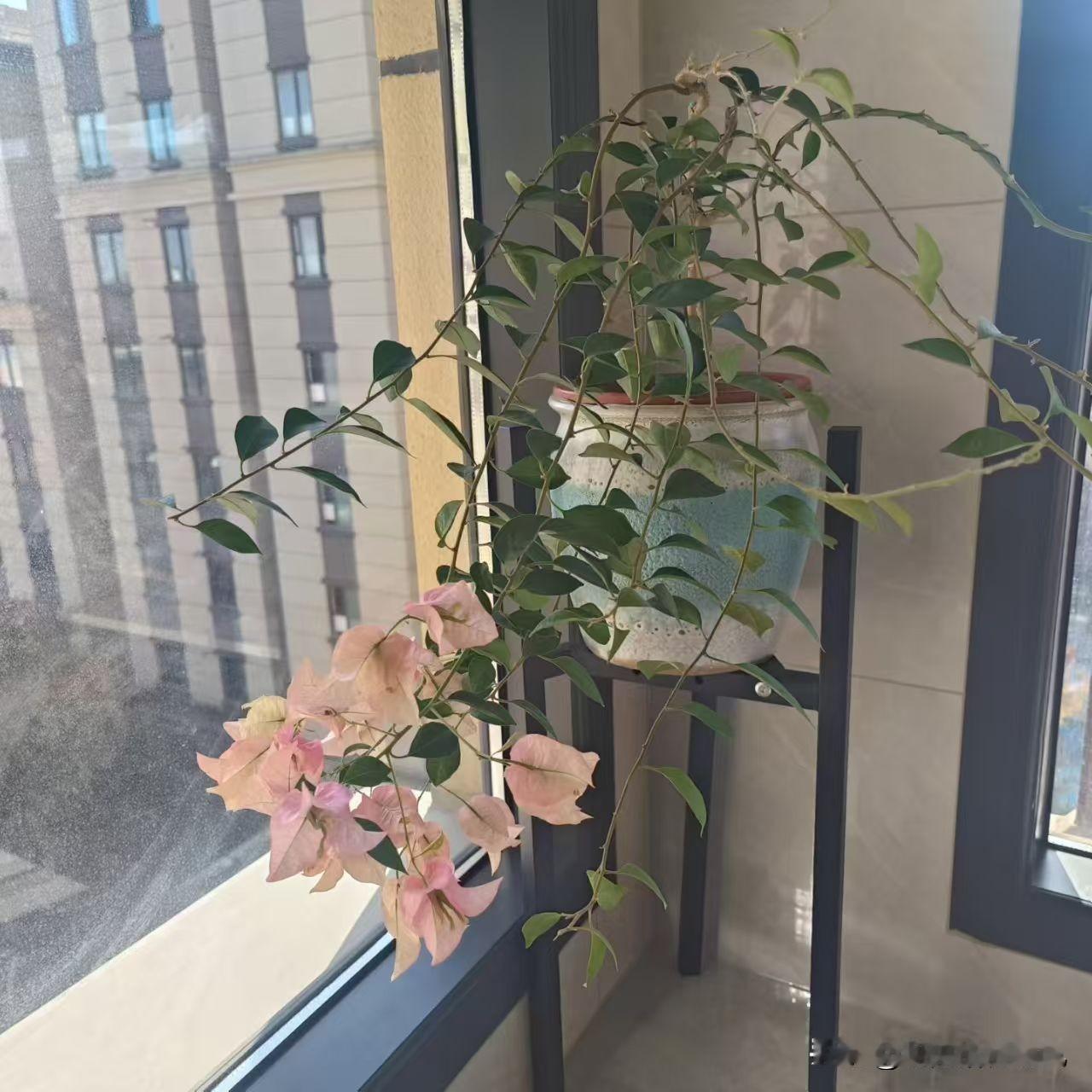 大家看我家窗边这株三角梅,枝条长得肆意又舒展,粉粉的花片垂下来特别好看。三角梅这