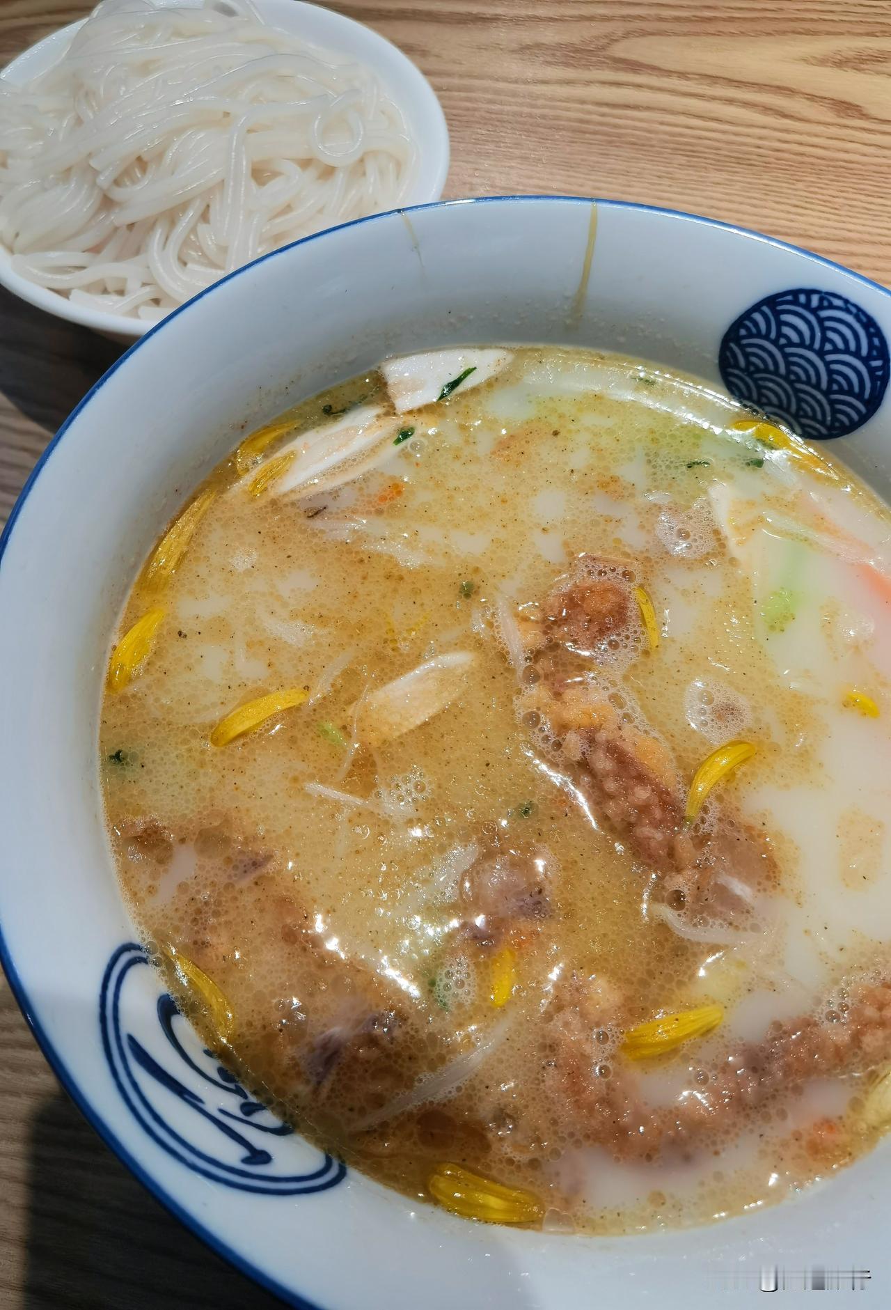 昆明寒潮来袭,晚上来一碗热气腾腾的豆芽米线,那叫一个暖心舒服。金叶落城傍晚时分,在市中心恒隆广场游玩,在其附近找到这家小吃,进店体验品尝一番。 美食店位于昆明市尚义街,靠白塔花园附近,导航可找到。这里交通方便,门口停不了汽车,共享单车倒是有不少。 环境干净!店面“南华面馆”,一侧屋是面馆,另一侧屋则是豆芽米线,选择的可能性比较多。我点了三荤三素的米线,等了半天没有叫号,一问服务员才知道,把我的给遗忘煮了。 米线无限续!汤汁还是白色浓郁,米线貌似是用“蒸”来加热的,给我上桌后米线没有汤汤水水的,这样不至于把原有的高汤给冲淡。 ✨体会:13元一碗这样的米线,感觉不贵。
