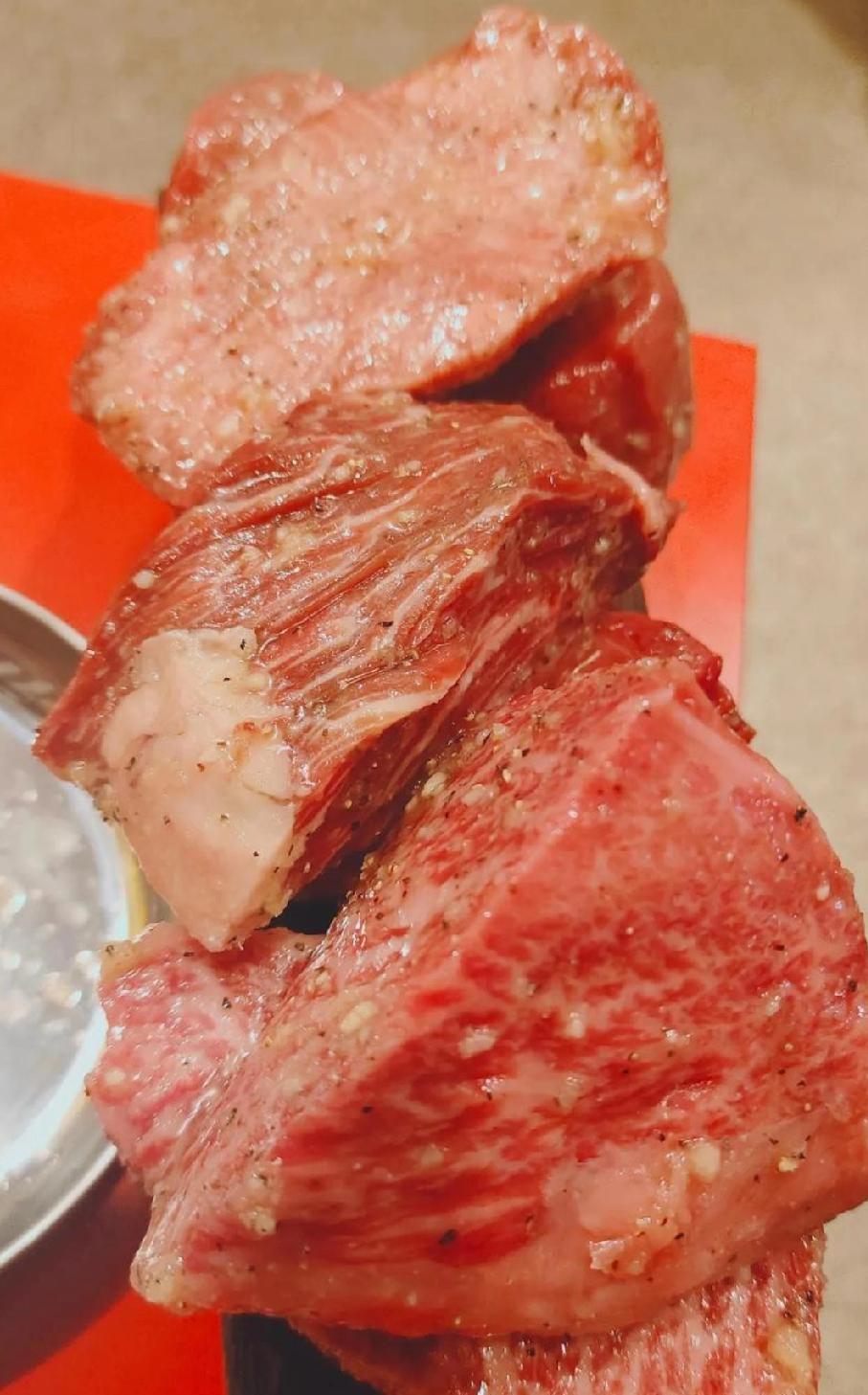 网友:吃完一直后悔! 去日本旅游,花了1200元吃了两块神户A5牛肉。 以前总是听说日本人和牛举世闻名,说这些牛都是听着音乐,喝着泉水,还有人类按摩长大的。 去日本旅游,几万都花了,咬咬牙多花1200块钱吃和牛,见识一下和牛到底多好吃。 但他吃完日本牛肉就后悔了,没啥特别,就是肉中的油脂含量高,不如在贵州吃的黄牛肉香。 网友吐槽,在中国牛脂肪是上不了桌的。想吃吃日本所谓的和牛。不需要去日本,只需要买一块牛吊龙肉,在跟老板要一些牛脂肪,掺杂在一起比日本和牛香多了。 这是烤的半生不熟的日本和牛,吃的也就是半生的血腥味和脂肪的焦香味!