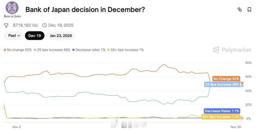 比美联储降息更可怕的是,日本央行可能的加息动作!目前日本央行加息25个基点的概率为48%,不加息的概率为51%,与此同时,10年期日本国债利率已经接近历史新高,来到了1.80%🧐12月大概率是金融市场炸药桶,比较恐慌的时刻!