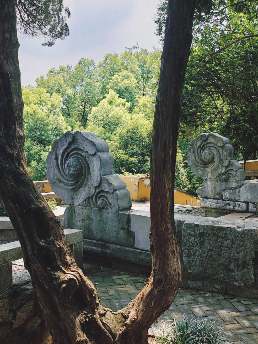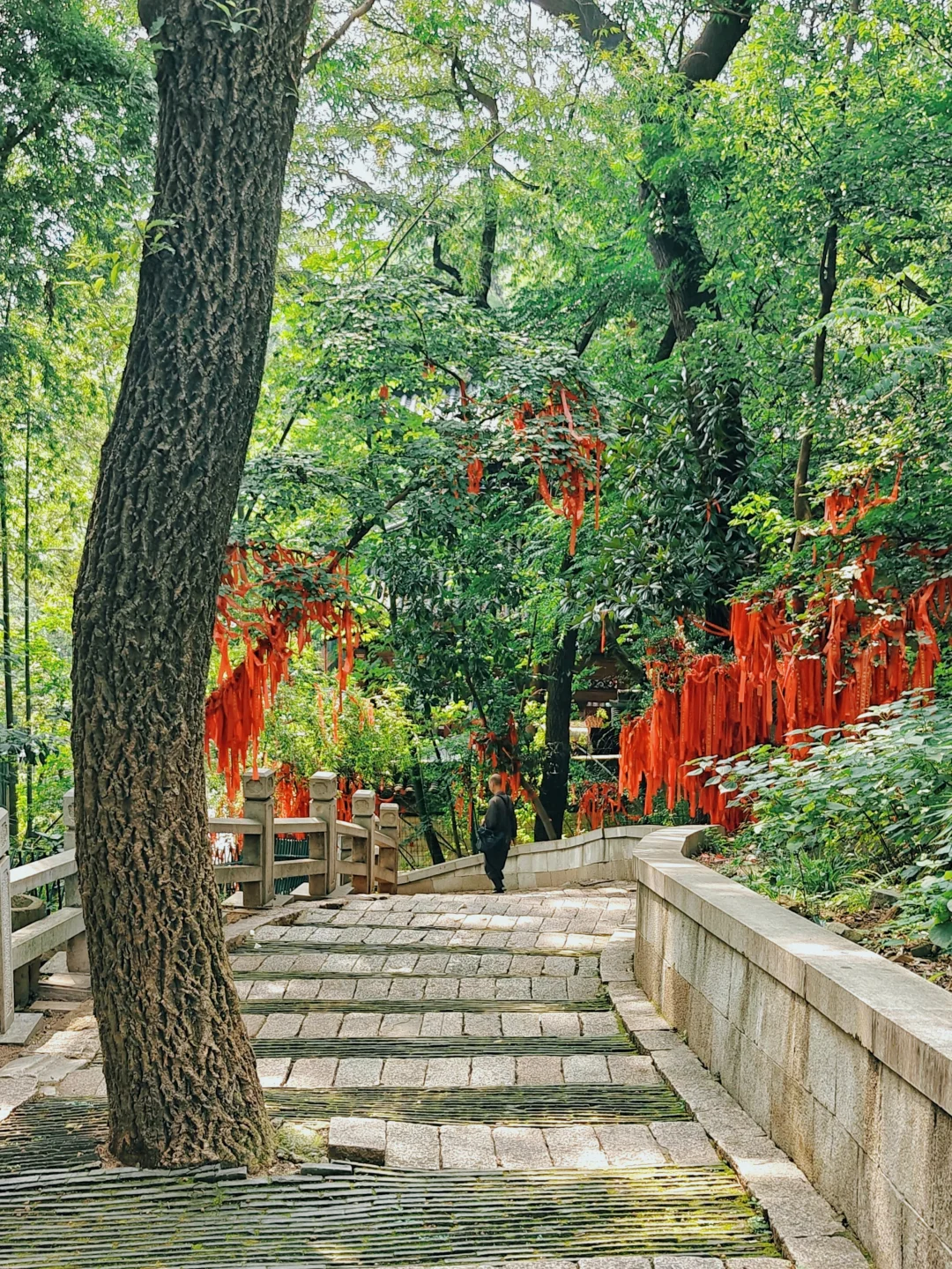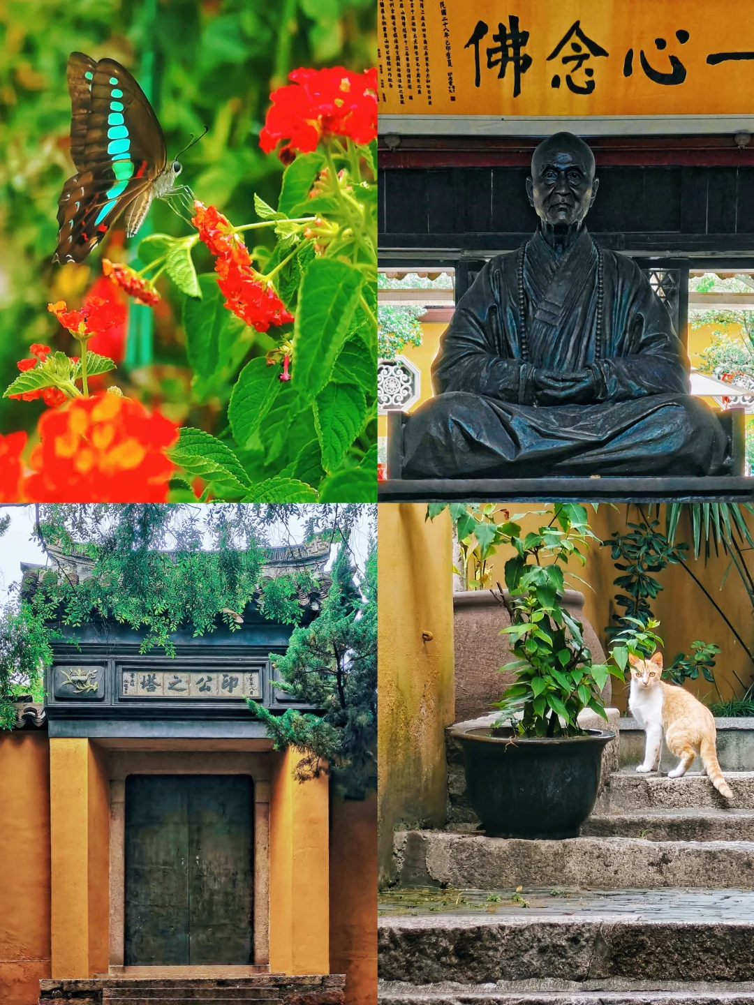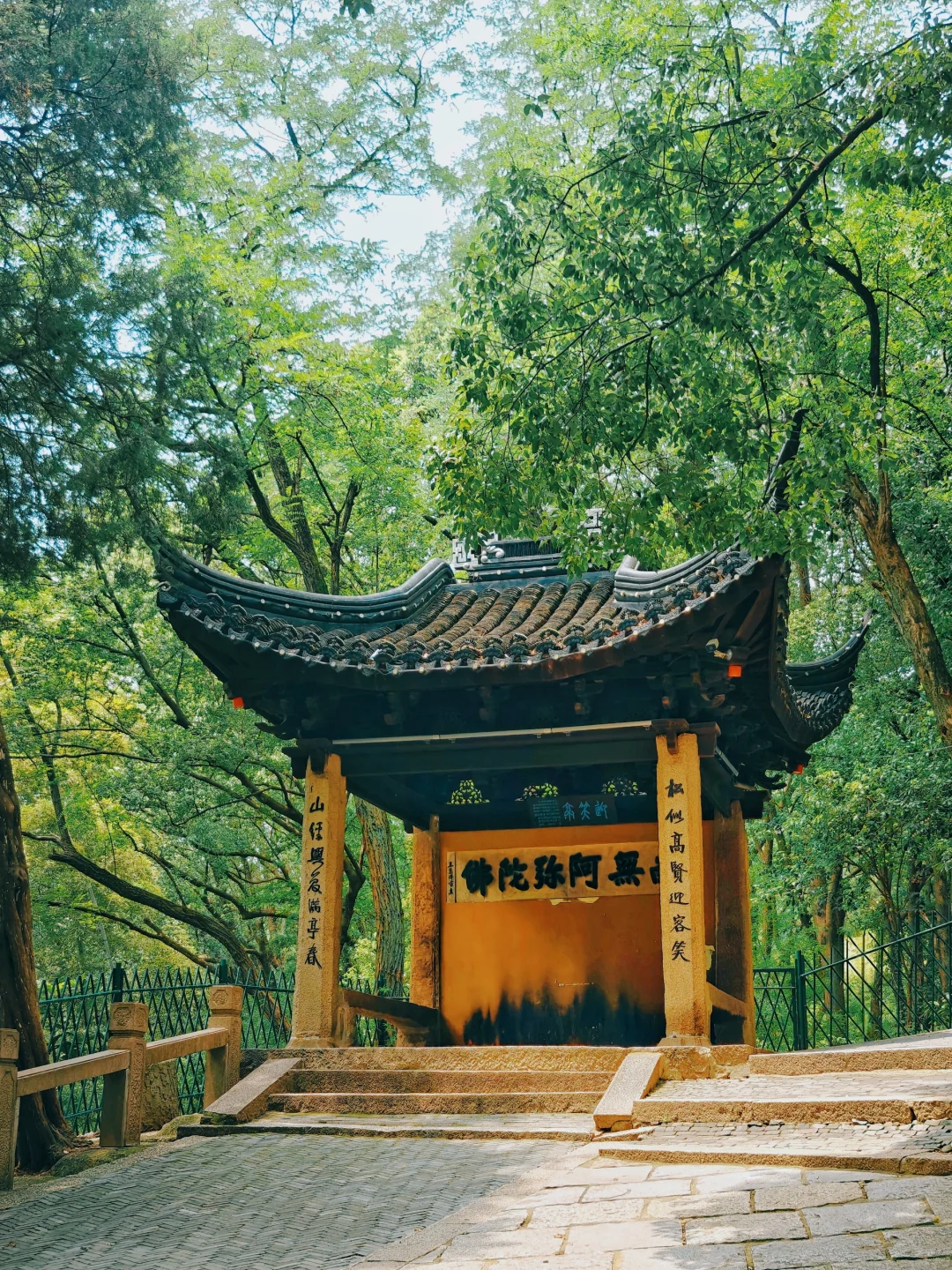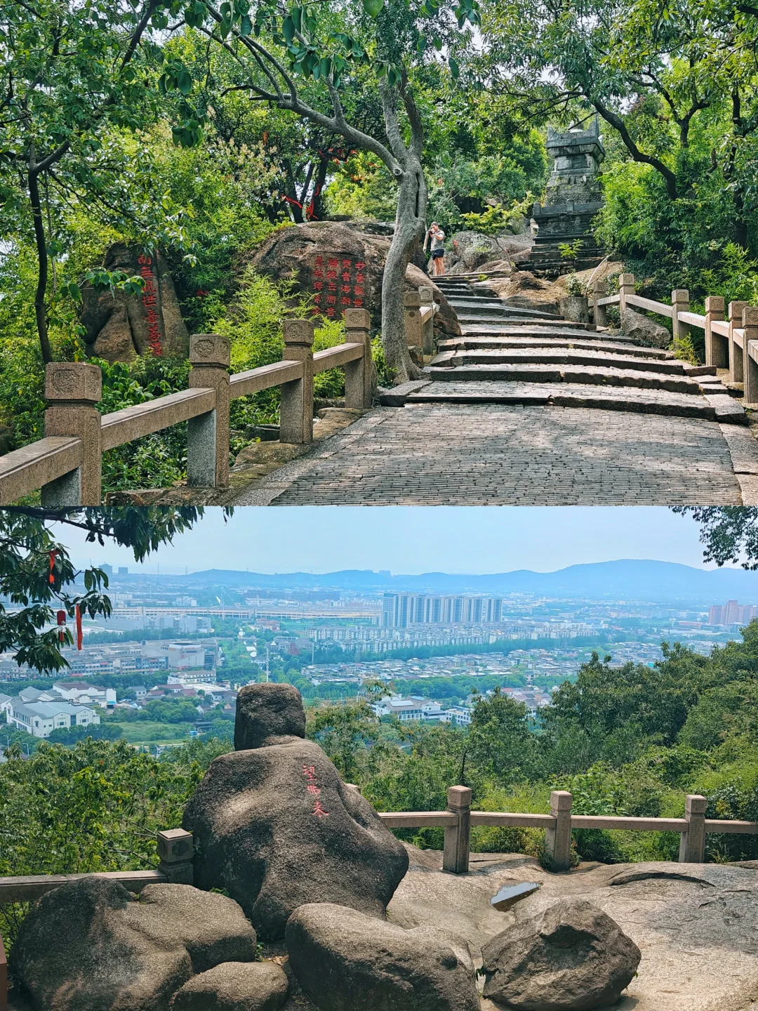 ⛰️灵岩山\n地处太湖之滨,毗邻木渎古镇(2公里左右)。山体由花岗岩构成,岩石球状风化明显,造成山多奇石,旧有\"十二奇石\"或\"十八奇石\"之说。故宫博物院藏有恽寿平绘《灵岩山图》卷,南朝梁简文帝、韦应物、白居易、刘禹锡、李商隐、范仲淹、文征明、唐寅、康熙帝、乾隆帝等诸多名人均曾到访并留下诗文。\n🛣️以山顶灵岩山寺为主,沿途有继庐亭、迎笑亭、落红亭、观音洞(西施洞)、石幢、采香径等景点。\n🚩海拔\u200c182米,上至灵岩山寺这一段无难度,徒步新手友好,三岁小孩也能爬。\n\t\n🏯灵岩山寺(崇报寺)\n🔸目前是江南蕞著名的净土道场,历史上高僧辈出。门票🎫1元\n🔸梁时名秀峰寺,唐代始称今名。明代遭毁,清康熙重建;咸丰时又毁于战火,现存殿主要为净土宗第十三祖印光法师于上世纪30年代重建。灵岩山寺之下有印光塔院,为其埋骨处。\n🔸比较特别的是天王殿正中供奉的是天冠弥勒,后边供奉的持杵韦驮是坐像。\n🔸大雄宝殿内供奉迦牟尼佛高达6米,两傍侍立迦叶和阿难两大弟子,这三尊香樟木佛像已有百多年历史,其余塑像则基本新造。\n🔸多宝佛塔是寺内蕞有特色的古建筑。始建于梁天监二年,历代屡遭火灾毁圯。明代遭雷击后仅剩砖塔塔身,塔刹、塔基、平台和塔檐为上世纪80年代末按照宋制恢复。\n🔸藏经楼珍藏佛经和文物,含孤本藏经1700余册、血书《华严经》等。\n🔸钟楼内有清康熙六年铸造的大铜钟,“灵岩晚钟”曾被列为苏州十景之一。\n🔸从大雄宝殿右侧圆形门洞进入“吴中胜迹”,为春秋时期吴王夫差为西施所建馆娃宫的御花园故址。现存遗迹:吴王井(圆形)、智积井(八角形)、梳妆台、玩花池、玩月池、响廊、琴台、西施洞、长寿亭、方亭等。此处有一高台可饮茶,当地人有一早就来坐一整天的,天气不太热的话倒也惬意。\n📖木渎名称由来与灵岩山密切相关:吴王夫差为取悦西施在灵岩山修建馆娃宫,并在紫石山扩建姑苏台。越王勾践为消耗吴国国力,趁机大量进贡木材。这些木材通过水路运输时堵塞了山下河道,史称“积木塞渎”,“木渎”之名由此诞生。\u200c\u200c\n👉总体商业气息有些浓,但有人文遗迹加成,观景台还可眺望苏州城景色,总体不错。\n\t\n🚶徒步路线拓展:【灵白线】灵岩山→大焦山→羊肠岭→白马涧龙池风景区→天平山,全程约10公里\n\t\n