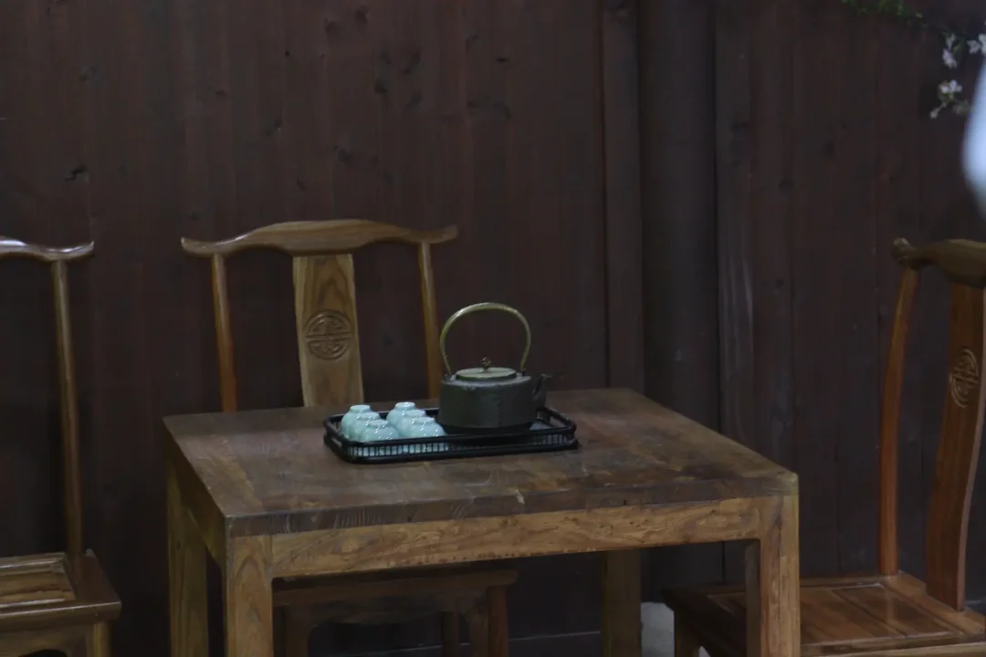灵峰寺是安吉的一座古刹,是当地人祈福必到之处。趁着清明一天假期,和队友提议一起去清净清净,走完了寺庙,在曲径通幽处,不经意间发现了一处茶舍——芥子舍,拾级而下,参天大树的环绕下,古色古香的房子、亭台楼阁与水池,充满了诗意。