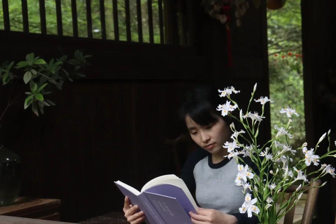 清明时节,寻到寺庙里的一处茶舍,看书喝茶。