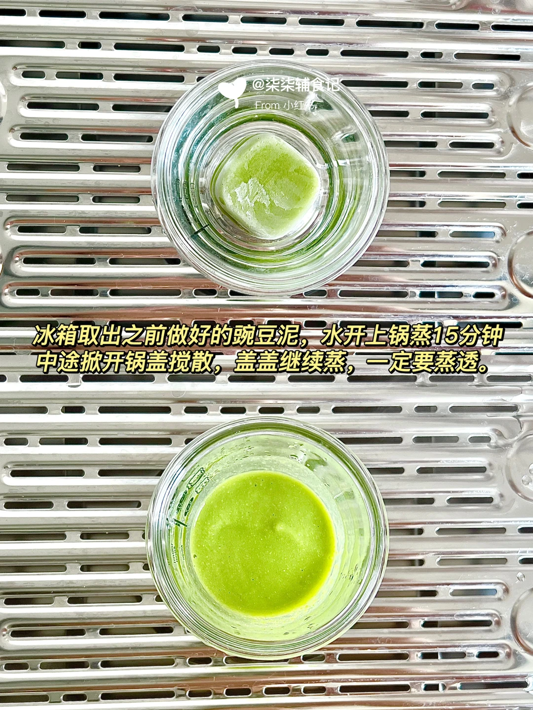 吃豌豆泥的第二天,由于柒柒不是敏宝,豌豆泥我给放到晚上掺着米糊一起吃了…
