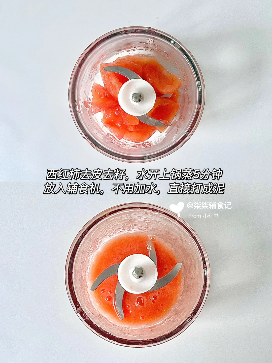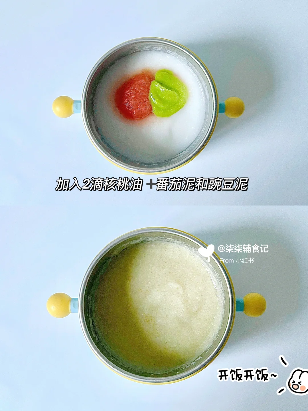 📝:米粉12g➕100ml水➕番茄泥➕豌豆泥
