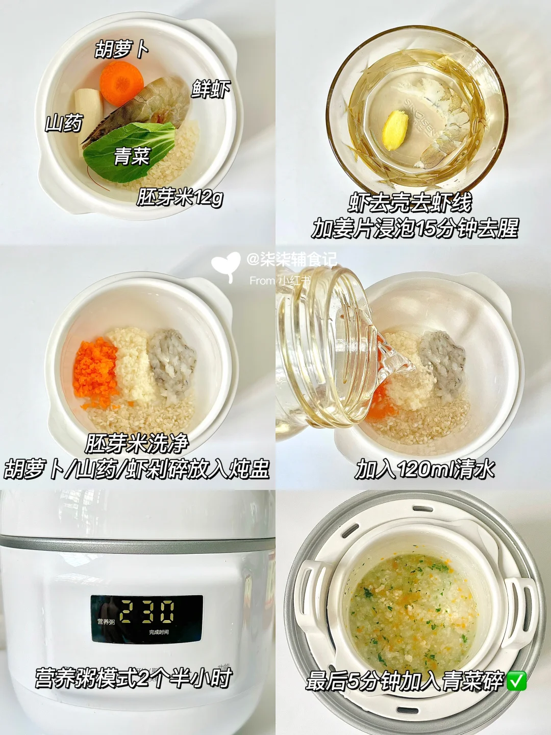 📝:胚芽米12g➕120ml水➕虾➕山药➕胡萝卜➕青菜