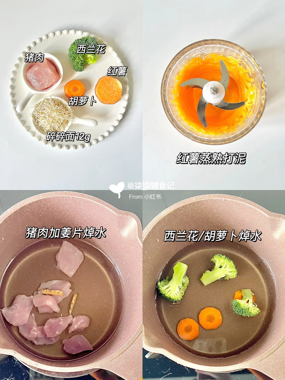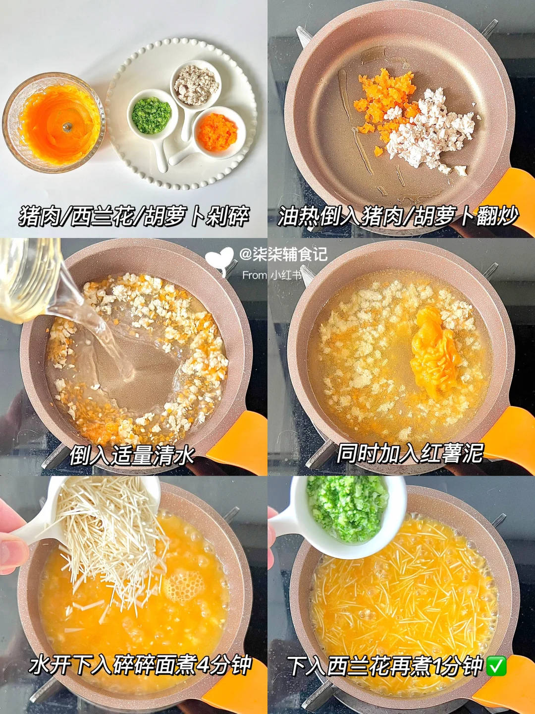 📝:碎碎面12g➕胡萝卜➕红薯➕西兰花➕猪肉