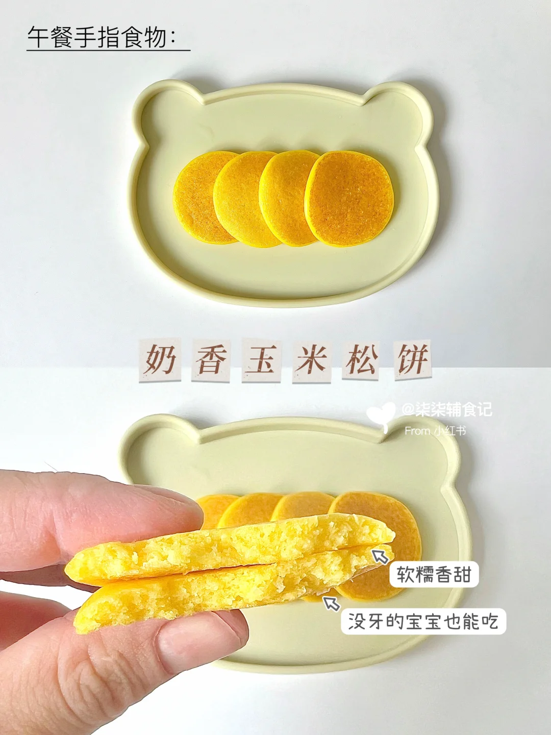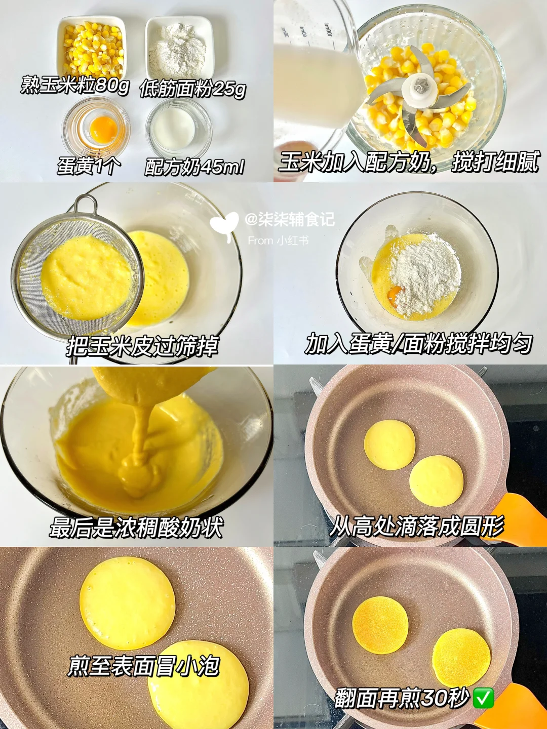 熟玉米粒80g➕低筋面粉25g➕配方奶45ml➕蛋黄1个