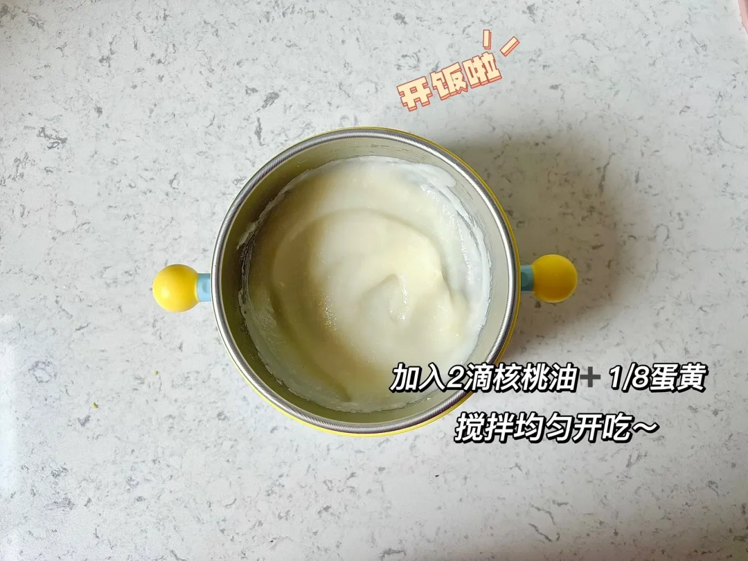 👧:6个月➕23天 🥣:高铁米粉➕核桃油➕蛋黄 ⏰:上午11:30 📝:7.5米粉➕70ml水,2滴核桃油➕1/8蛋黄 🍽️:下午加餐猕猴桃🥝 💡宝宝吃蛋黄有哪些好处: ▫️蛋黄中含有丰富的优质蛋白质,蛋黄中的蛋白质含量高达15%,而且蛋黄蛋白质含人体所需的各种氨基酸。 ▫️蛋黄中含有各种矿物质和维生素,蛋黄中含有丰富的维生素A、维生素E、维生素D、核黄素、钙、磷、铁、硒、锌等微量元素。这些营养元素和微量元素都是宝宝生长发育必不可少的,所以宝宝吃了以后是非常有助于宝宝生长发育的。 ▫️蛋黄中含有丰富的叶黄素、玉米黄素,可以促进宝宝视力的发育。 ▫️蛋黄中的卵磷脂和蛋白质,对宝宝的脑细胞以及神经系统发育有促进作用,可以促进脑细胞的发育,所以宝宝吃蛋黄的好处是非常多的。 💡蛋黄的营养价值很高,但是初次添加还是不能加太多,循序渐进,一开始1/8,1/4,1/2,逐渐添加至一整个蛋黄。 💡为了宝宝吃蛋黄不会感染到细菌🦠,蛋黄一定要煮熟,颜色最好是金灿灿的,营养成分不会流失,煮太久蛋黄表面会发绿,会流失很多营养,而且宝宝也不易消化。 💡所以时间要控制好,根据我的步骤来,基本上是不会出错的,每个炉子的火候不一样,大家也可以先煮一个试试看,不行自己吃掉😂我也是自己吃了两个才成功的。 今天米糊全部吃完啦,吃完喝了50ml水,下午四点左右用勺子刮泥吃猕猴桃🥝,姐妹们,你们能买到黄心猕猴桃还是买黄心的,会比较甜,我这里买不到😭绿心的比较酸。 🥝猕猴桃含有丰富的维生素c,可以补充身体所需要的维生素以及膳食纤维,宝宝吃了可以促进身体内的其他营养物质而吸收和代谢,对的生长发育具有一定的帮助。