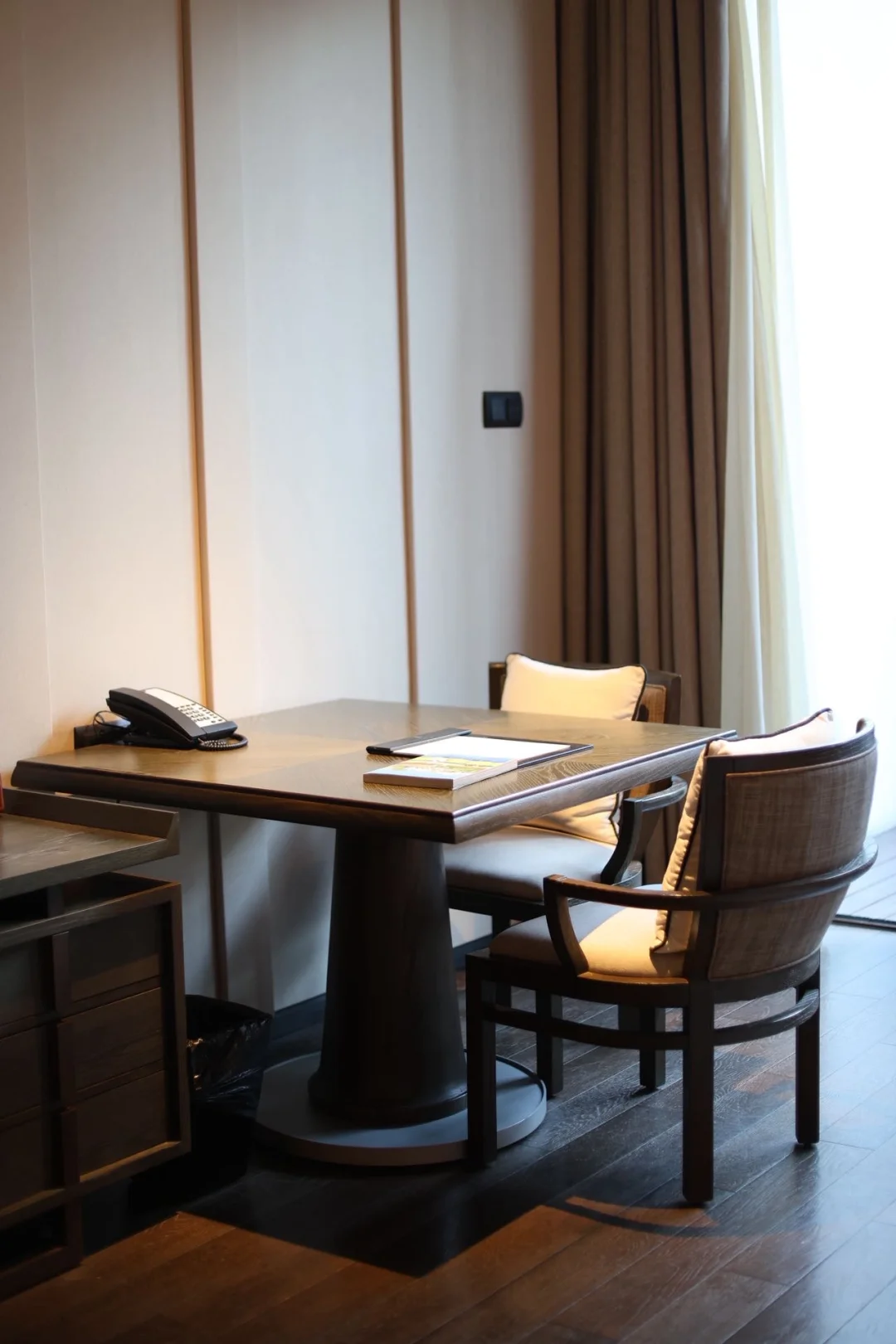 酒店内部陈设巧妙融入“茶、禅、竹”的东方意趣,温润的木质肌理、清雅的竹制装饰与暗含禅意的摆件相映成趣,每一处细节都浸润着细腻的文化温度。